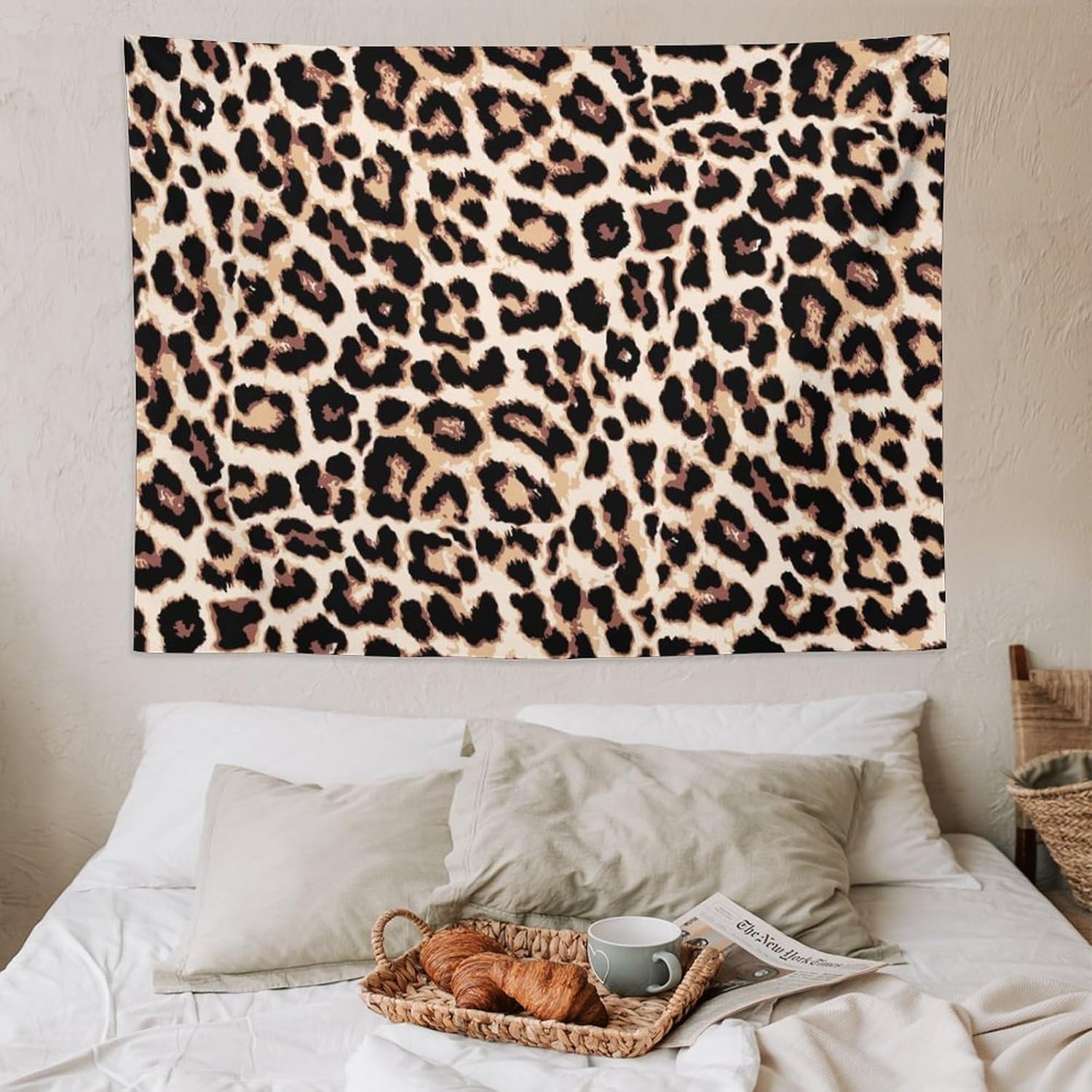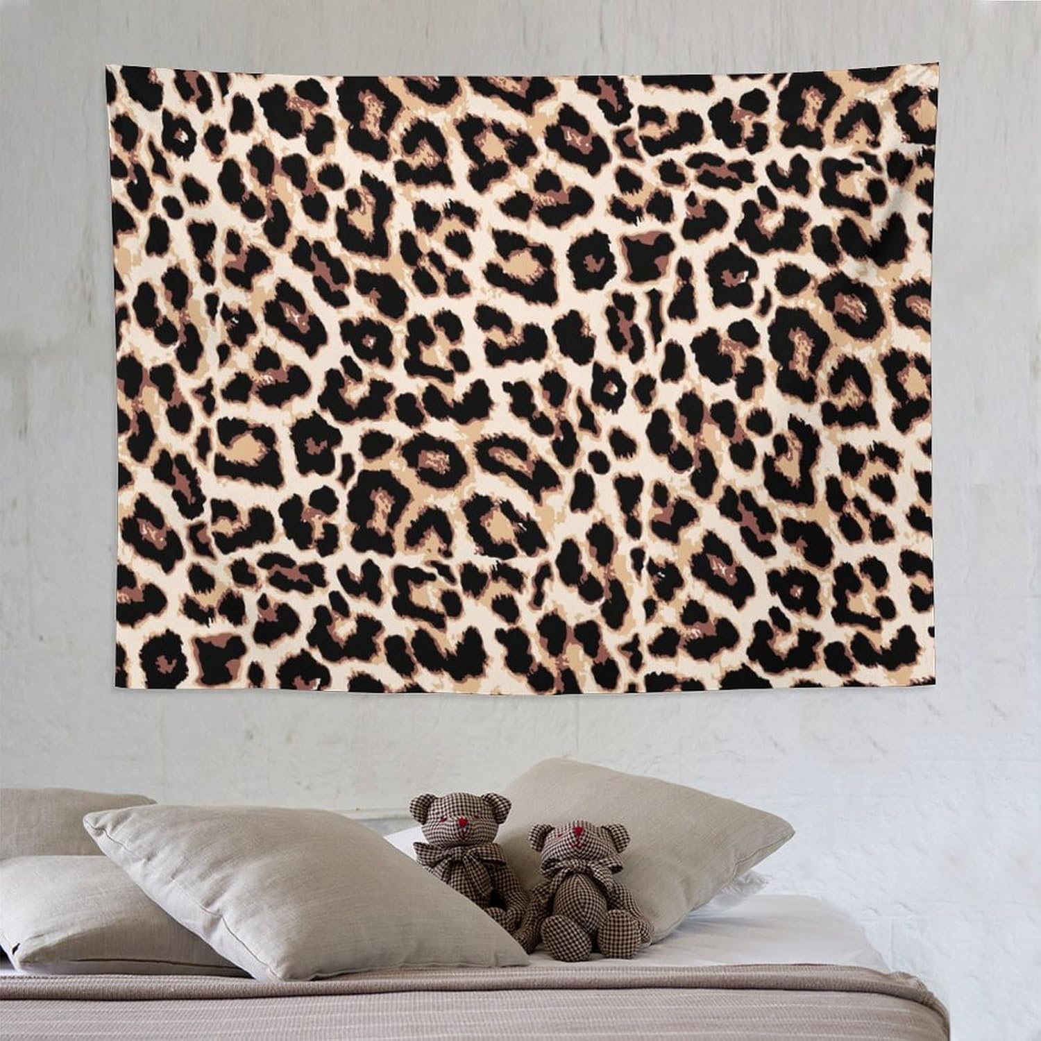 HZOHNAGO Leopard Print Tapestry Rustic Brown Leopard Wild Animal Printed Wall Tapestry Painting Wall Hanging for Bedroom Living Room Dorm 80" W x 60" H