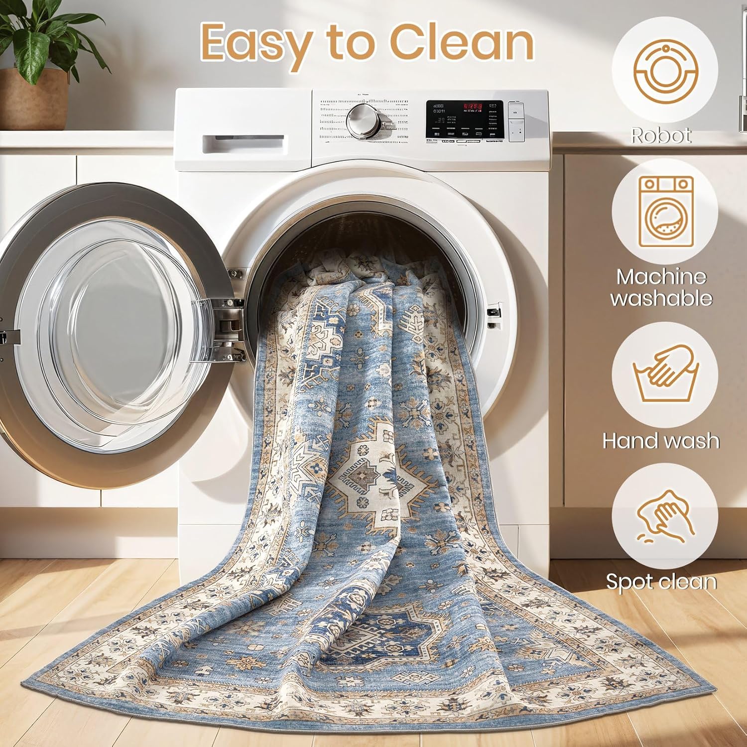 - Machine Washable Rug: The advantages of washable rug is that they are machine washable and easy to maintain, while 6x9 size and above are recommended to the nearby commercial laundry