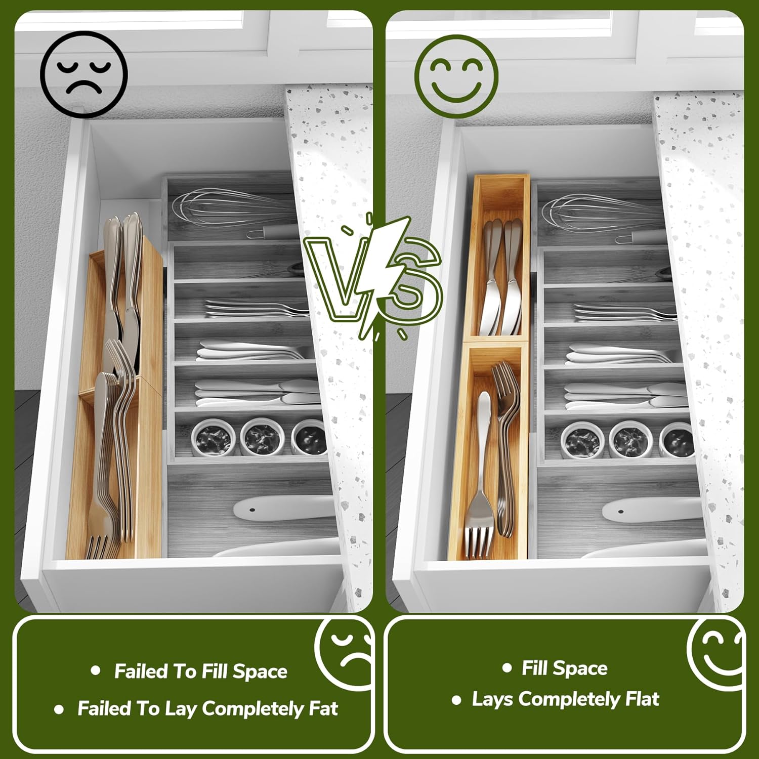 - Not Just for Drawer Storage: The silverware drawer organizer is versatile, not only does it excel in drawer organization, but it is also the perfect solution for desktop organization, making it easy to find and adding to the beauty of your desktop at the same time