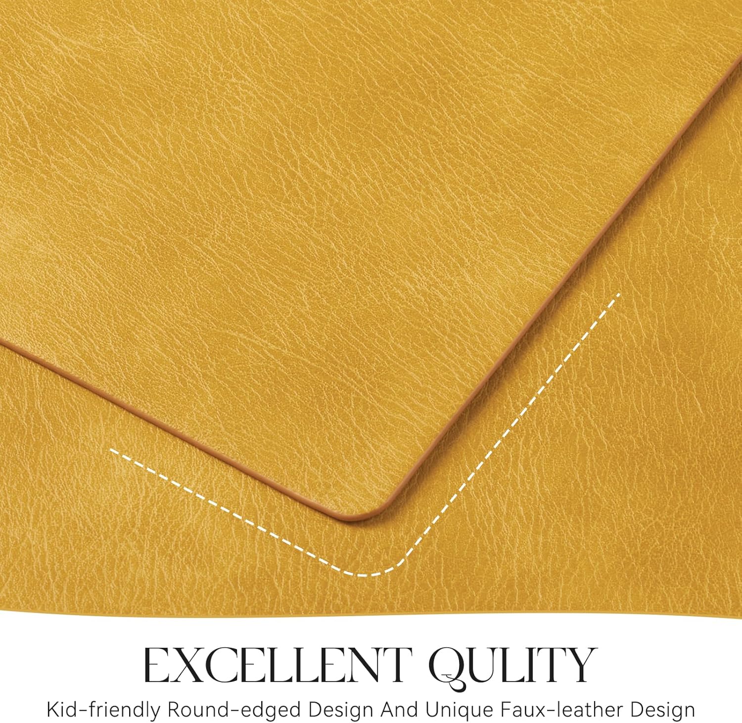 MOSAYT Vinyl Placemats Set of 12-12 X 17 Inch - Faux Leather 100% Waterproof Oil-Proof Wipeable PU Place Mats, Heat Resistant Reversible Table Mats for Kitchen, Dining, Outdoor (Yellow)