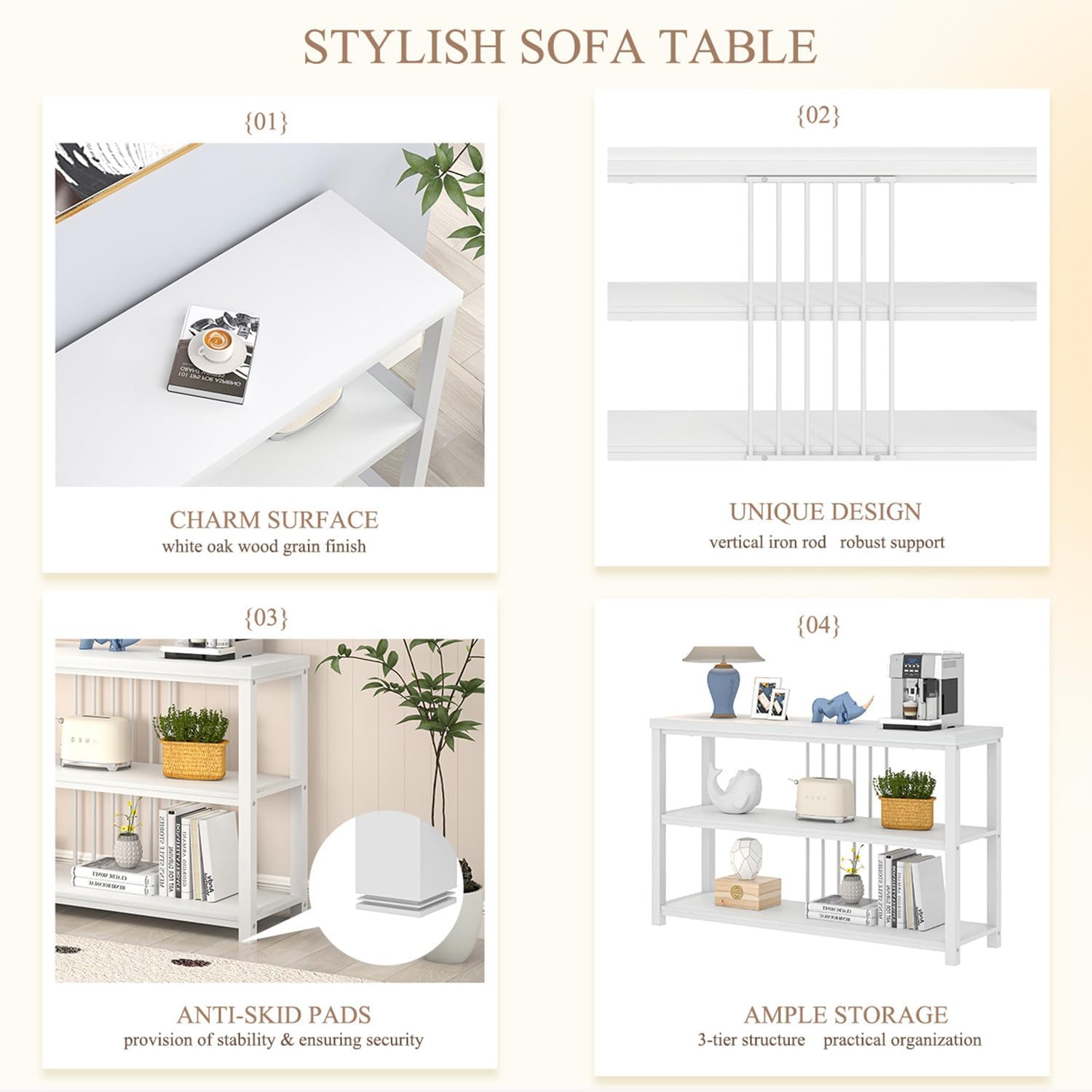 - Versatile: Console tables for entryway, doubling as display, entry way, TV console, behind couch table, foyer, window table, sofa bar table or open storage shelves for living room, office, dining room, bedroom, hallway. Marrying functionality with style