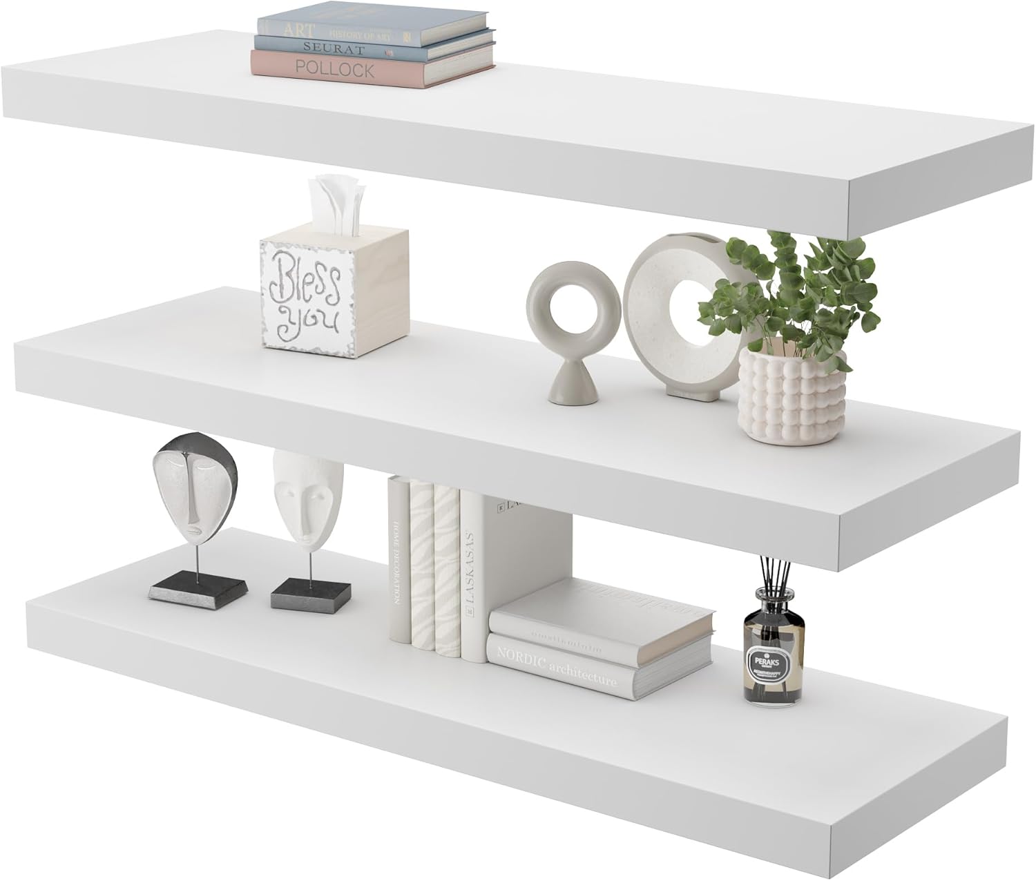 Large Floating Shelves for Wall Set of 3 Wooden Wall Shelves 24 in x 12.75 in x 2 in Room Decor Long Shelf with Invisible Wall Mount Bracket for Bedroom Kitchen Living Room White
