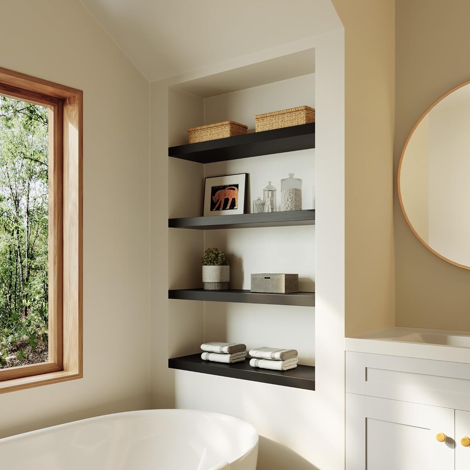 - Heavy Duty - The wooden shelf can hold up to 25 lbs. Not only meet your daily home decor placement needs, but also able to hold many bulky items such as dishes, vases, lots of books and more