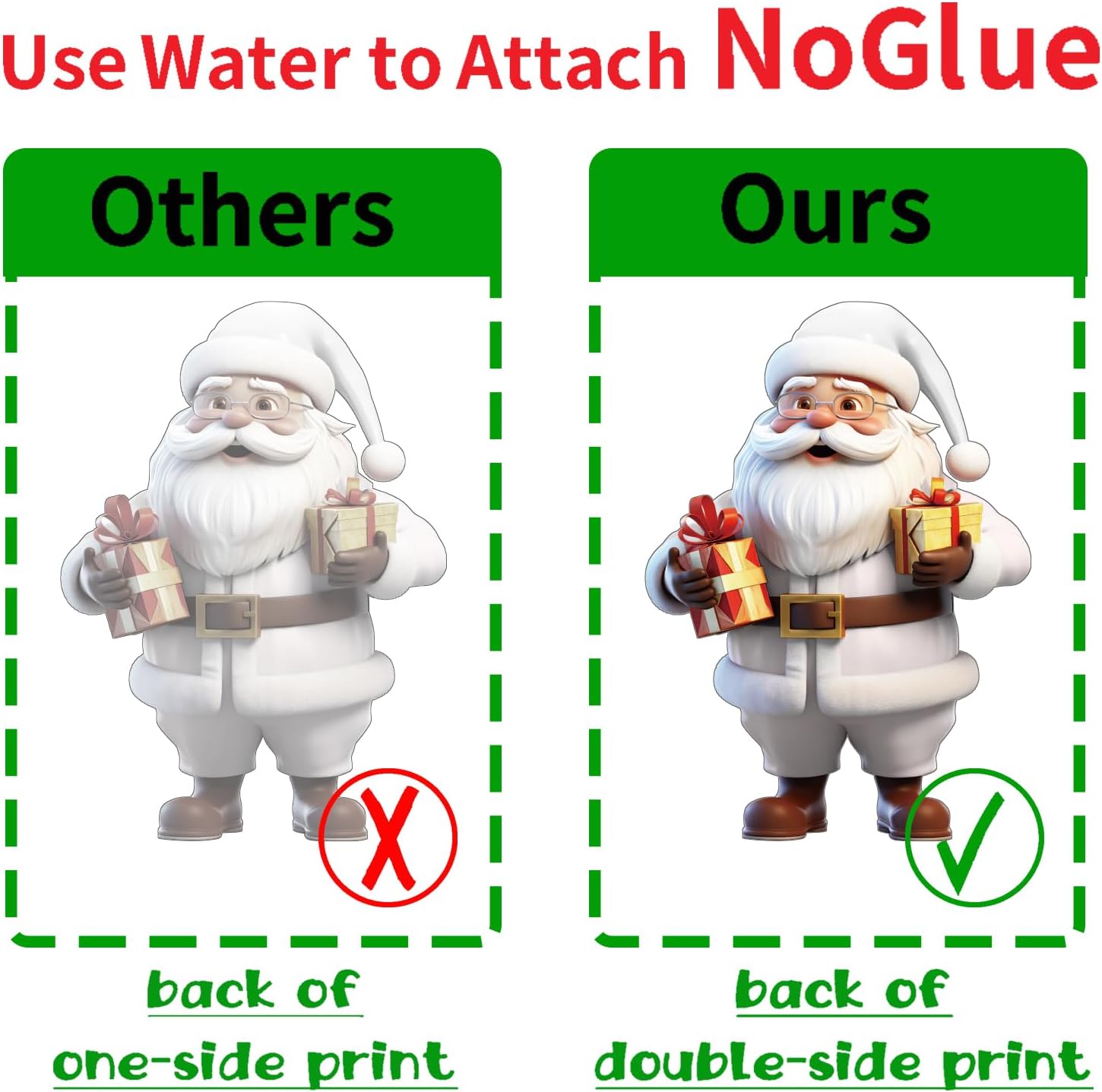 - PREMIUM MATERIAL: Christmas window decals are made of high-quality electrostatic membrane PVC material, non-toxic, waterproof and reusable. These decals require no glue, making them easy to apply and remove without leaving any residue. Christmas window stickers features also double-sided printing technology, whether indoors or outdoors, you can clearly see the vivid and interesting patterns.