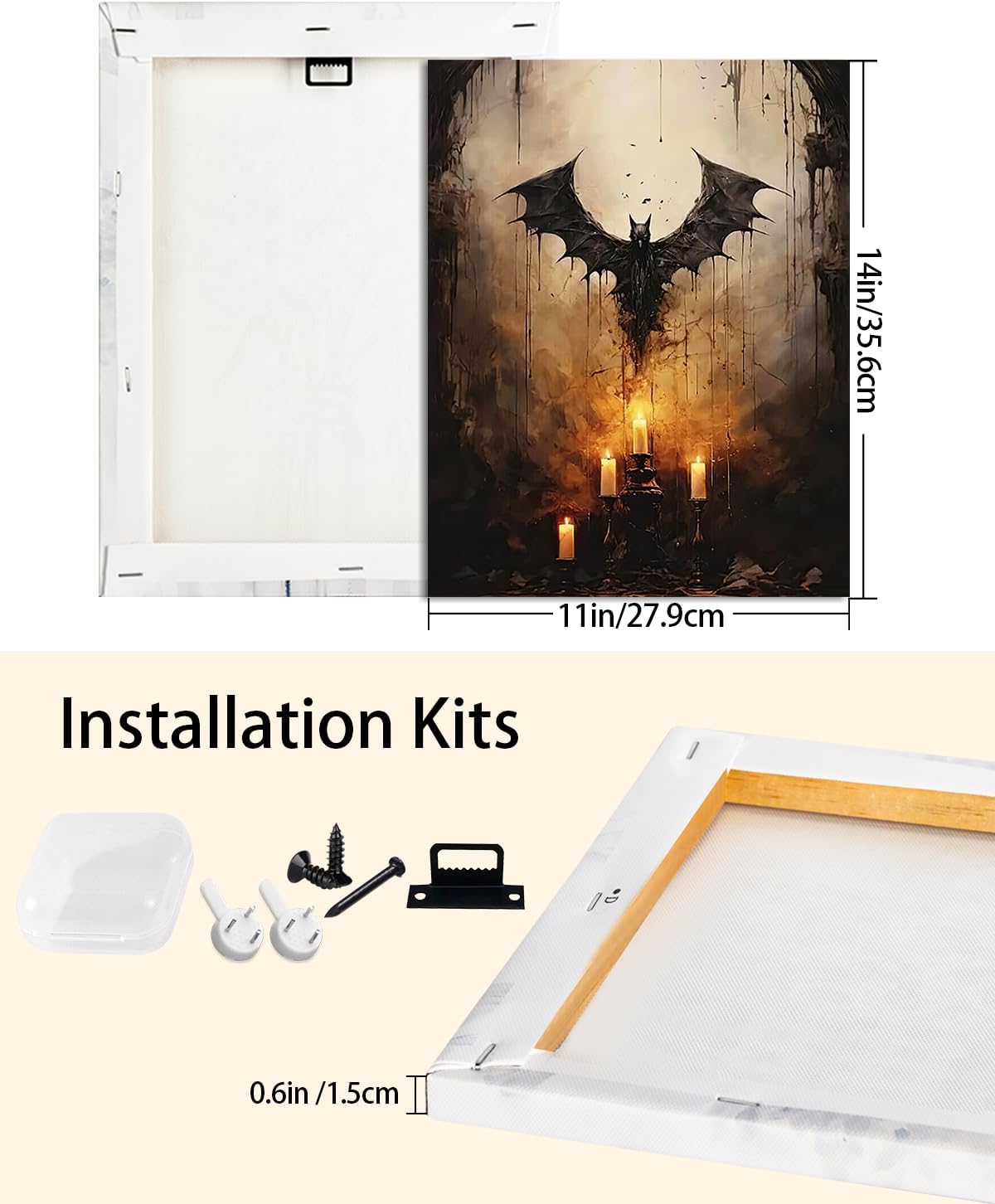 AbcCustomize Halloween Canvas Wall Art - Vintage Moody Bat Poster, Gothic Dark Academia Wall Decor, Spooky Halloween Decor for Farmhouse & Cottage, Fall Decorations Indoor for Living Room & Bedroom