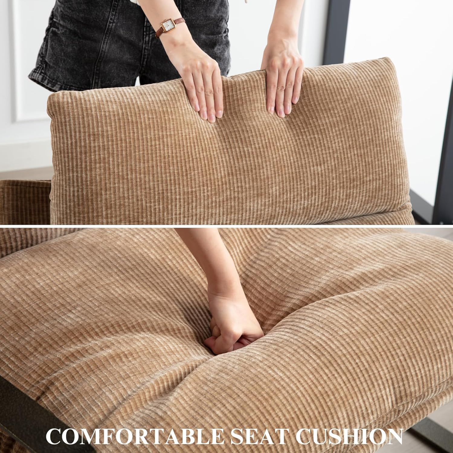 - High Quality Cushions : Covered in chenille fabric, the densely padded foam cushions make this chair ideal for rest and relaxation. Whether you're hosting friends, reading, or watching TV, this series offers superior comfort.