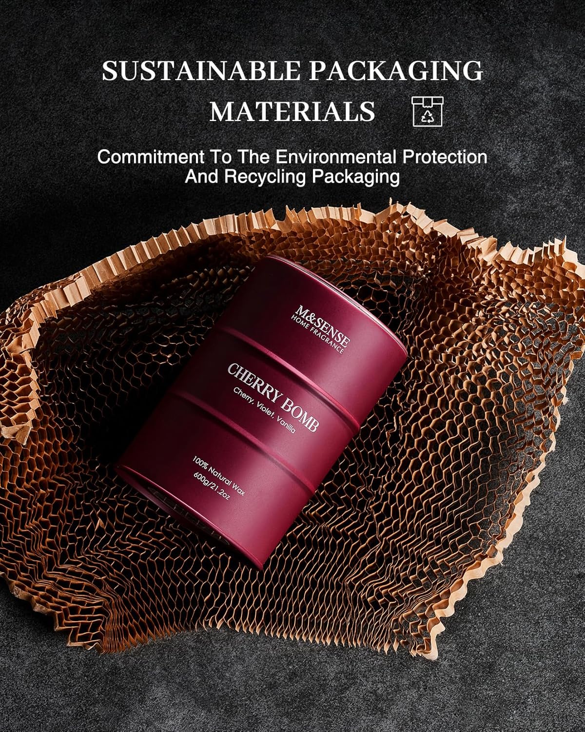 - π Sustainable Material - M&SENSE candles are all crafted with the finest and most natural ingredients. Using high-end vegetable wax and unbleached cotton wicks in a reusable and recyclable tin. Packaged in recycled honeycomb paper and cardboard box for a more sustainable future.