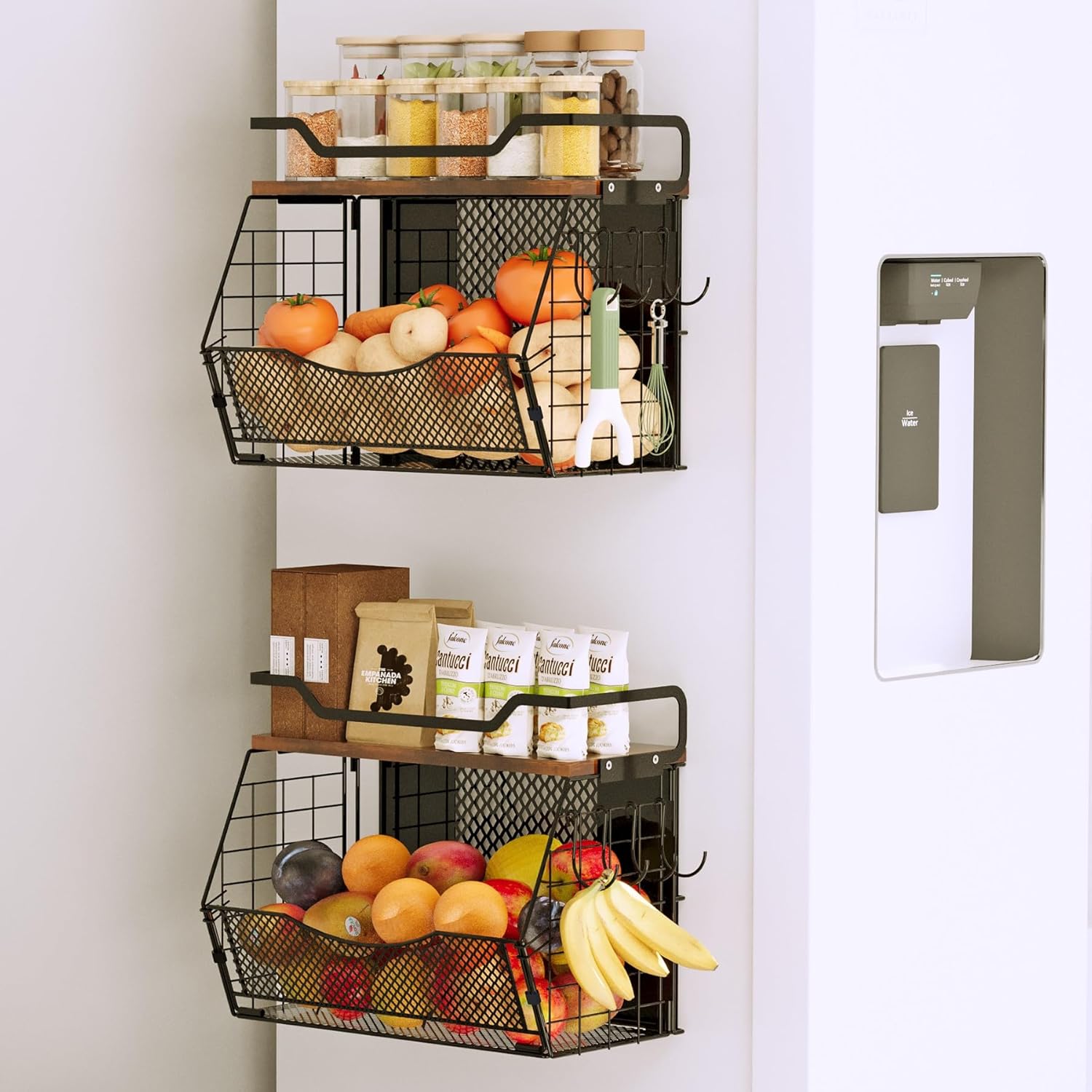 - Dual Powerful Magnets: Our magnetic spice rack for refrigerator feature dual magnets that support up to 35 pounds per basket, ensuring a firm grip and preventing slippage. You can place magnetic shelf for fridge on any metal surface, such as a refrigerator or metal shelf, without any additional support