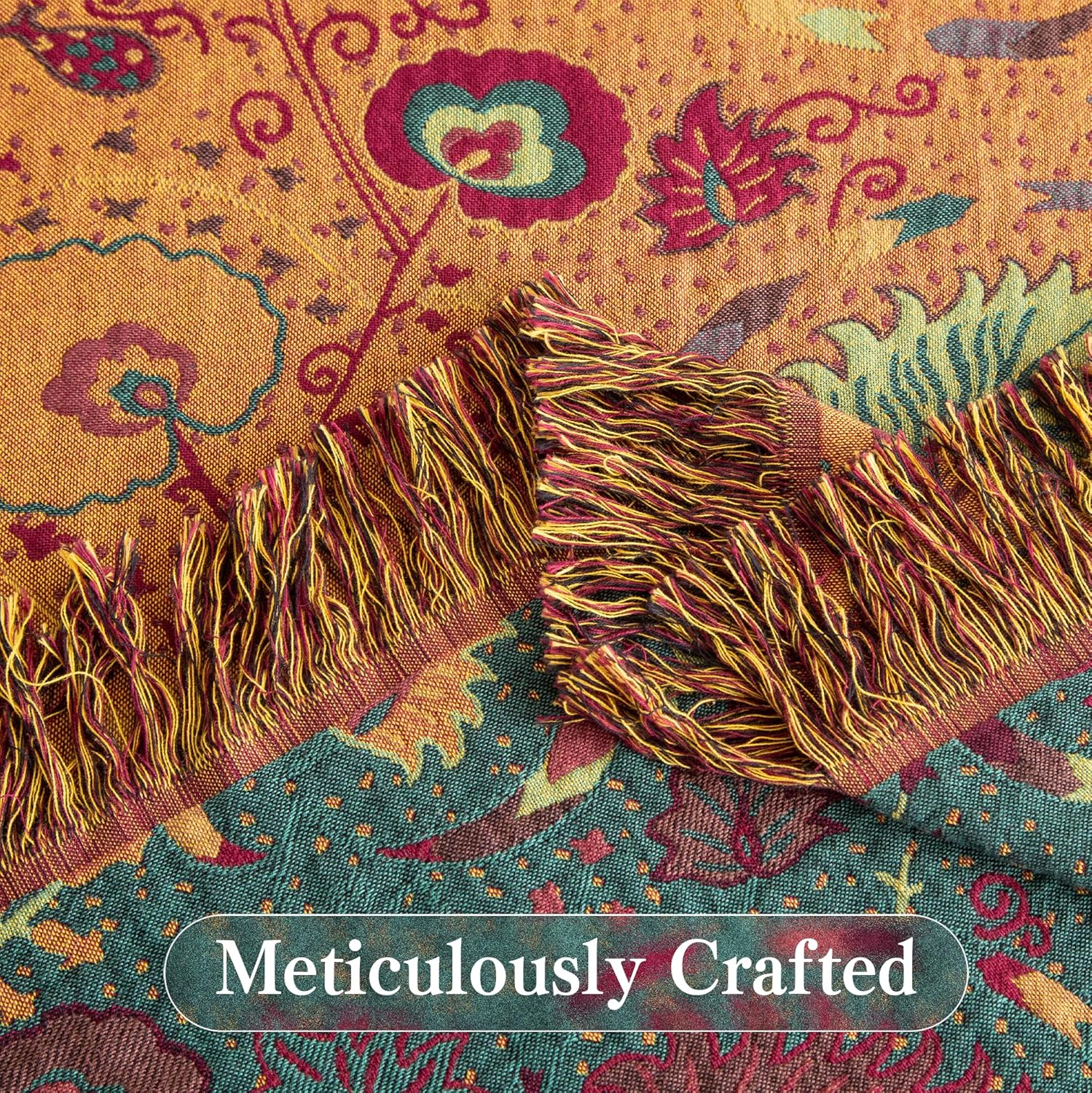 - Boho-Inspired Design: Bring a touch of boho-inspired style to your home with this woven blanket. Its colorful floral patterns and artistic design complement any decor, from cottagecore to farmhouse to modern styles. This decorative piece adds warmth, texture, and personality to your space, creating a cozy, welcoming atmosphere wherever you place it. Perfect for refreshing your living room or bedroom, it combines beauty and comfort in one must-have accent.