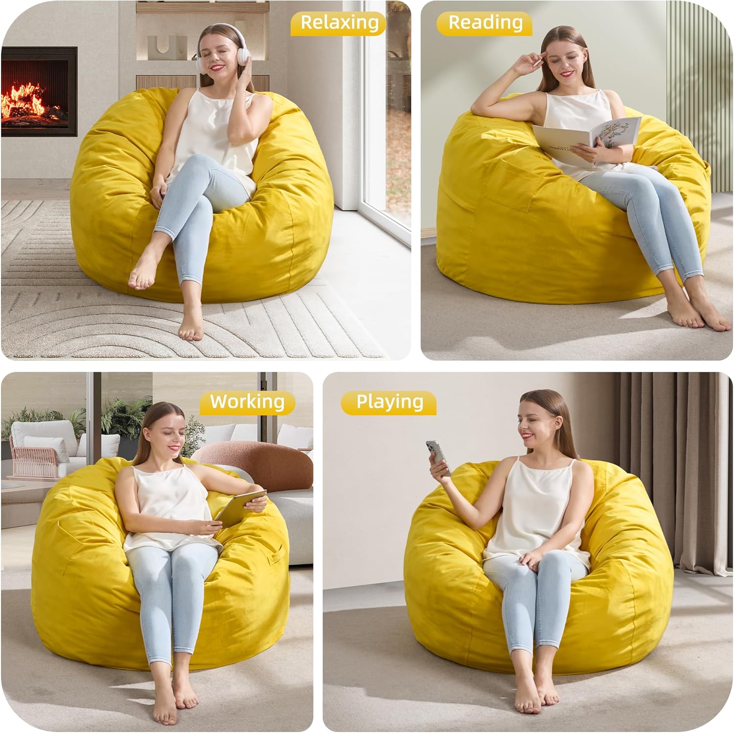 Hobestluk 3FT Bean Bag Chair Giant Bean Bag Chairs for Adults Large Bean Chairs with Removable Cover, Beanbag Chair with Filler, Adult Bean Bag Chairs for Living Room, Bedroom