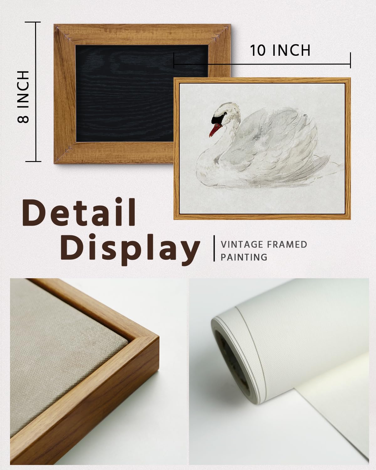 VIYYIEA Framed Canvas Wall Art, White Swan Wall Art for Living Room, Vintage Animal Oil Painting Picture, Aesthetic Home Decor, Bathroom Wall Decor -【Swan】-(10L x 8W)