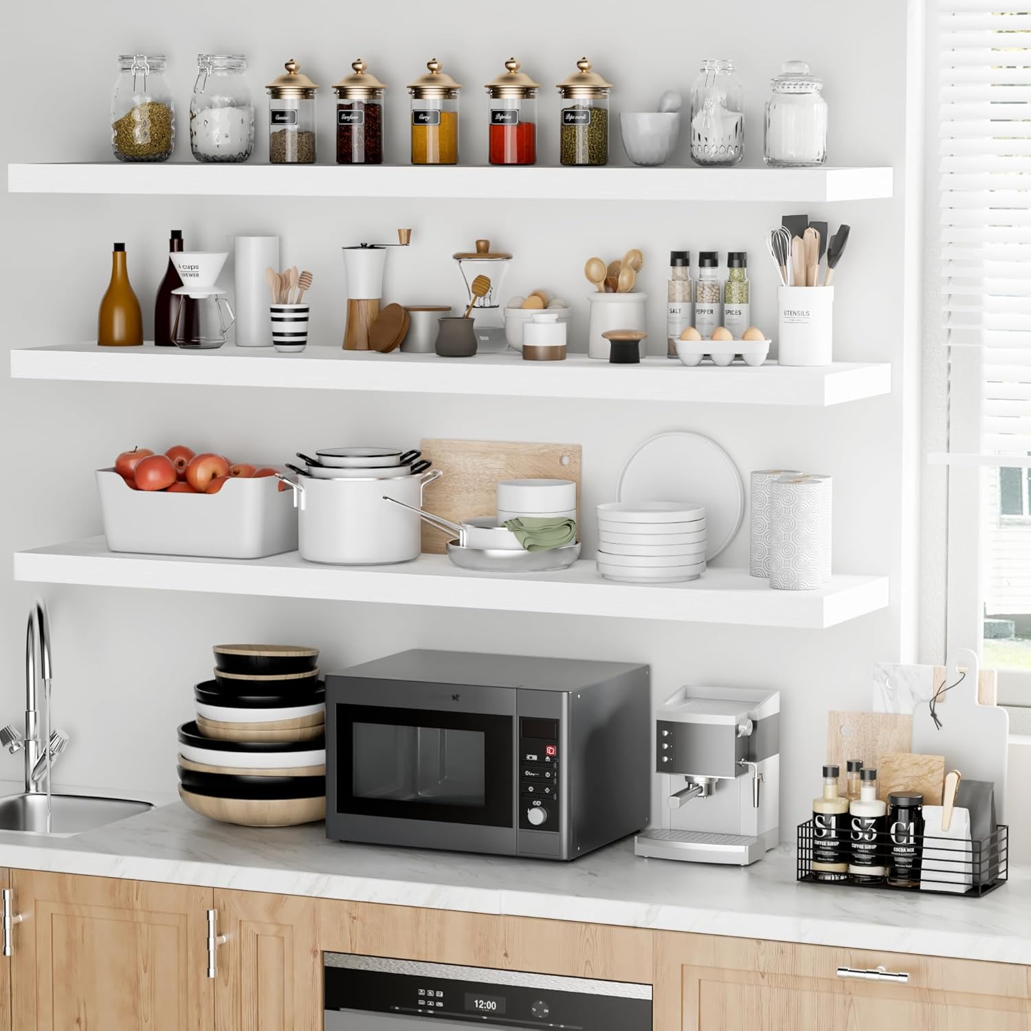- Versatile & Multi-Scene Functionality: Our floating shelves are available in a variety of sizes and thicknesses, allowing you to choose the perfect fit for your space. Use them in the bathroom to store beauty products, hair care items. In the bedroom, they can hold books, cosmetics, and personal items. In the kitchen, they’re perfect for spices, jars, or small utensils. Or display photo frames, trophies, or collections in the living room. These shelves efficiently use wall space to create a tidier, more spacious feel in any room.