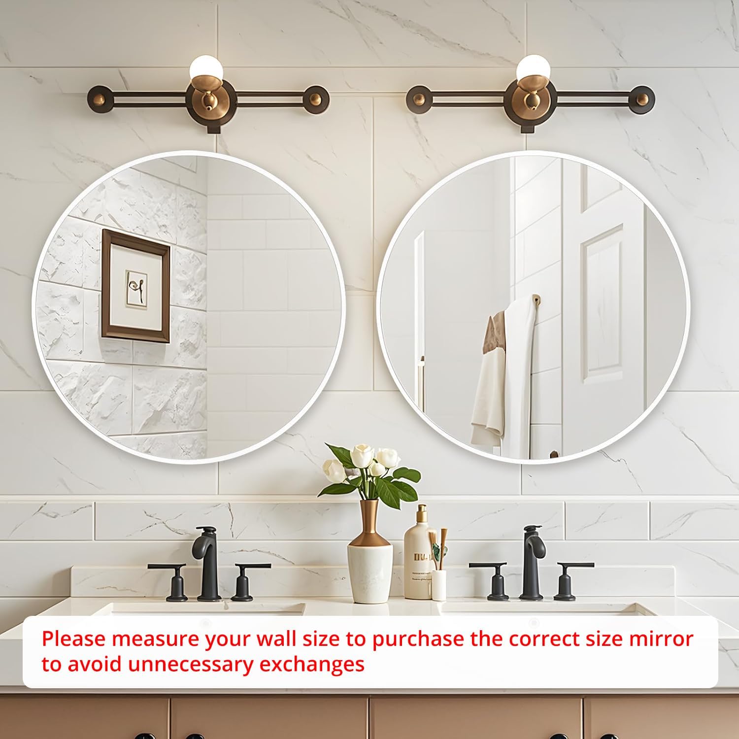 - Perfect Fit Interior Design - Great value and an excellent addition to your guest bathroom, which goes well with country chic inspired guest bathroom. And the simple round mirror is perfect fit for the entry way, bedroom, living room, baby nursery, office, which is a good wall decoration