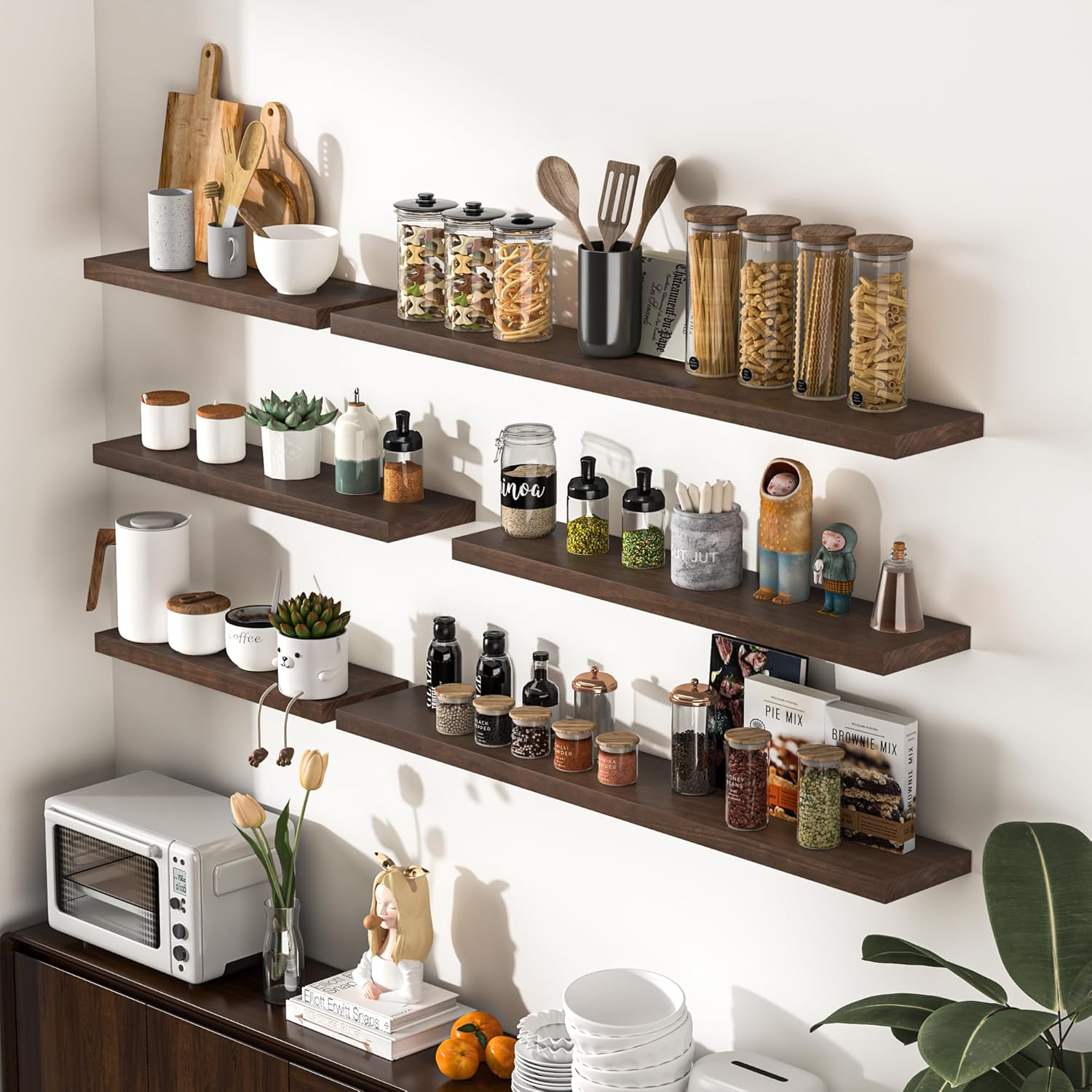 - Extra Deeper & Thicker for Storage - Each board measures 30"W x 8"D x 1.4"H. Extra deeper and thicker design in order to bring maximizes storage space and weight capacity, even hold up to 70 lb. This floating shelf taking up zero square feet, reduces clutter and highlights dรฉcor in compact spaces. It can help make full use of the empty wall, making it much more space-saving and making your room look larger and tidier.