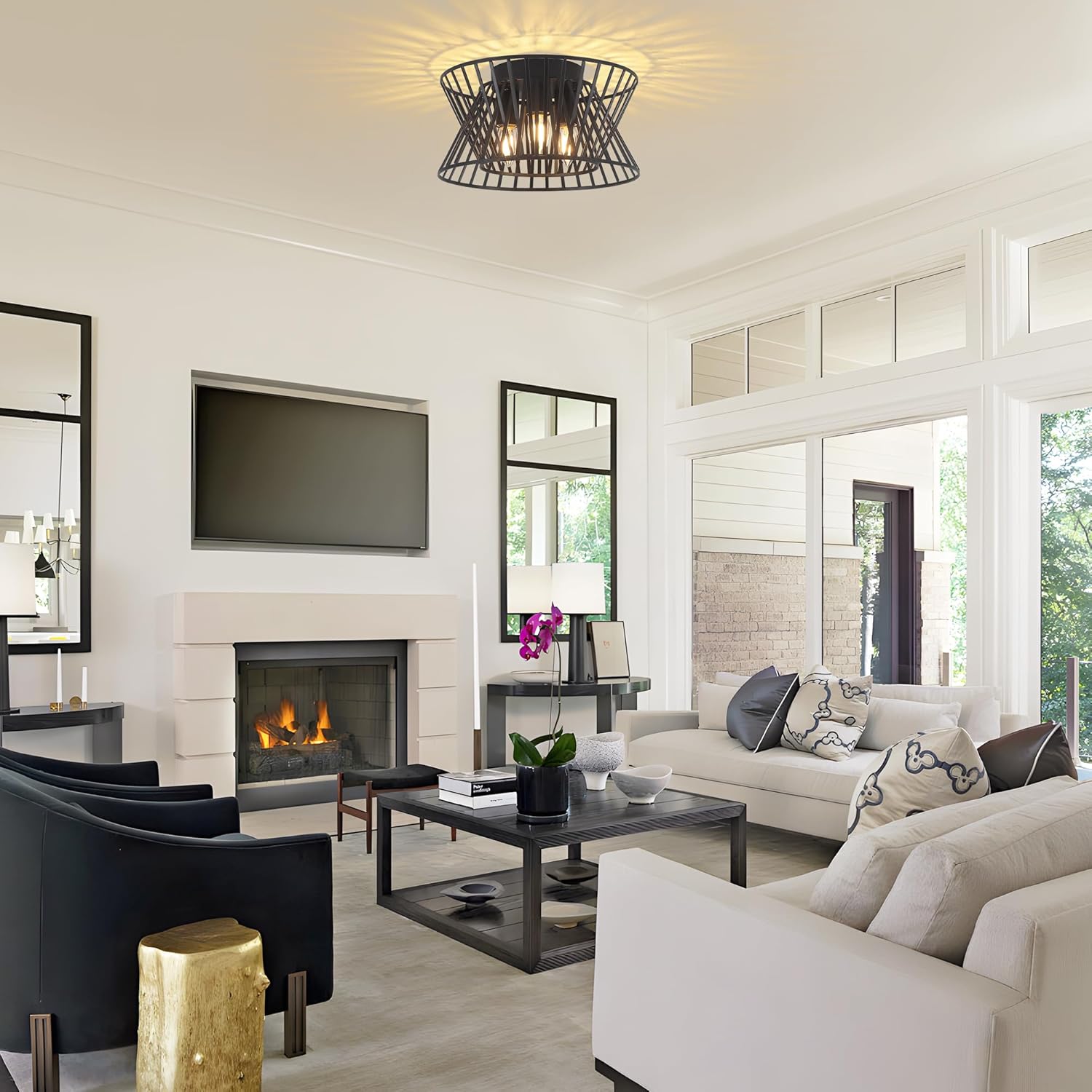 - Product Size: This black ceiling light is 12.59 inches wide and 9.84 inches high, 3 E26 bulbs, (Compatible with LED bulbs (up to 60W). This semi flush mount ceiling light is fully dimmable when paired with a dimmable bulb and dimmer switch (bulb and dimmer switch not included) for customizable lighting