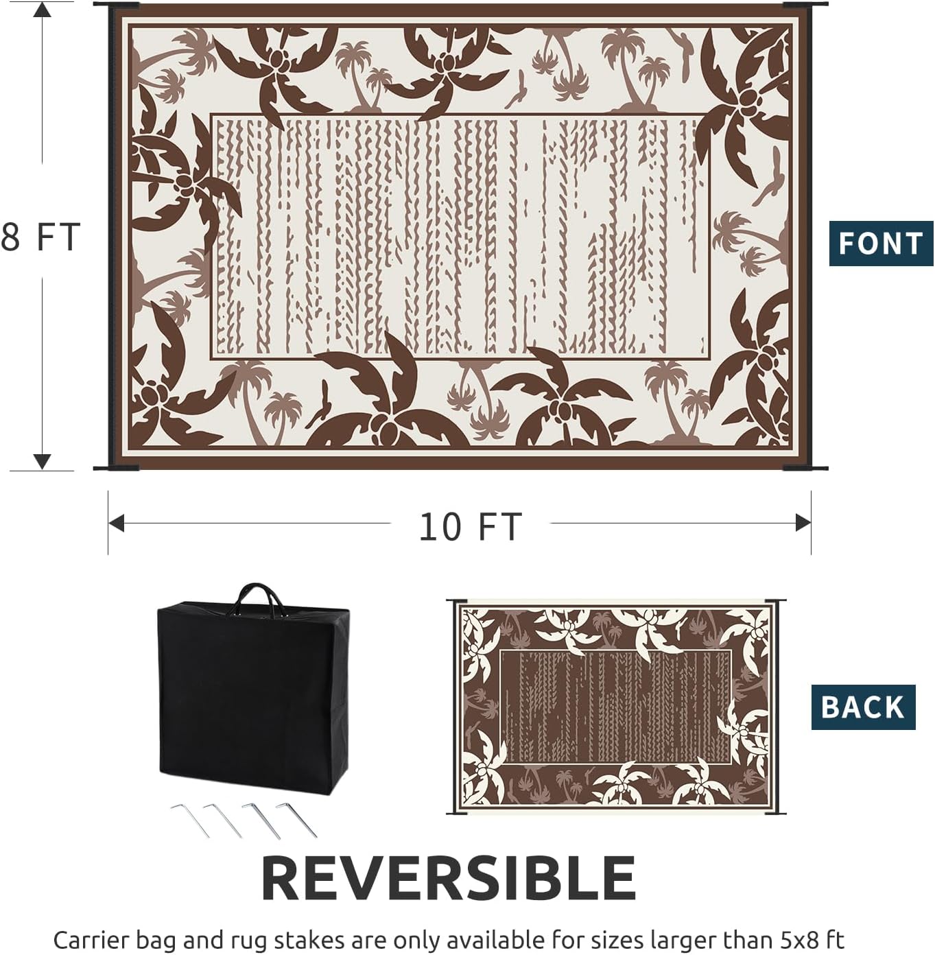 - Reversible Outdoor Rug: Featuring a double-sided tropical coconut tree design in a brown and beige palette, this indoor outdoor rugs bring a relaxing holiday vibe to your outdoor decor. and you can choose both sides to meet your needs, just flip the patio rug to switch patterns.