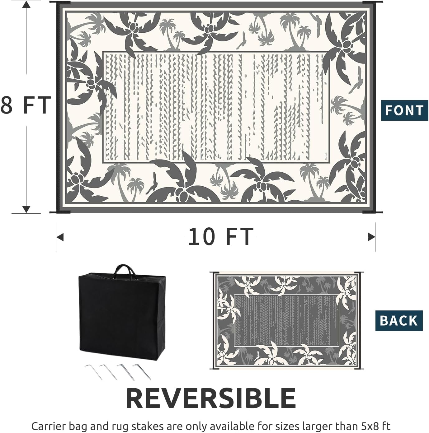 - Reversible Outdoor Rug: Featuring a double-sided tropical coconut tree design in a grey and beige palette, this indoor outdoor rugs bring a relaxing holiday vibe to your outdoor decor. and you can choose both sides to meet your needs, just flip the patio rug to switch patterns.