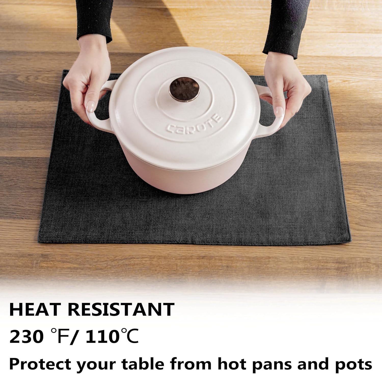 Demetex Black Cloth Placemats Set of 8 Wipeable Classic Place Mats Heat Resistant Table Mats for Dining Room Kitchen Tables, 13x19 inch, Black