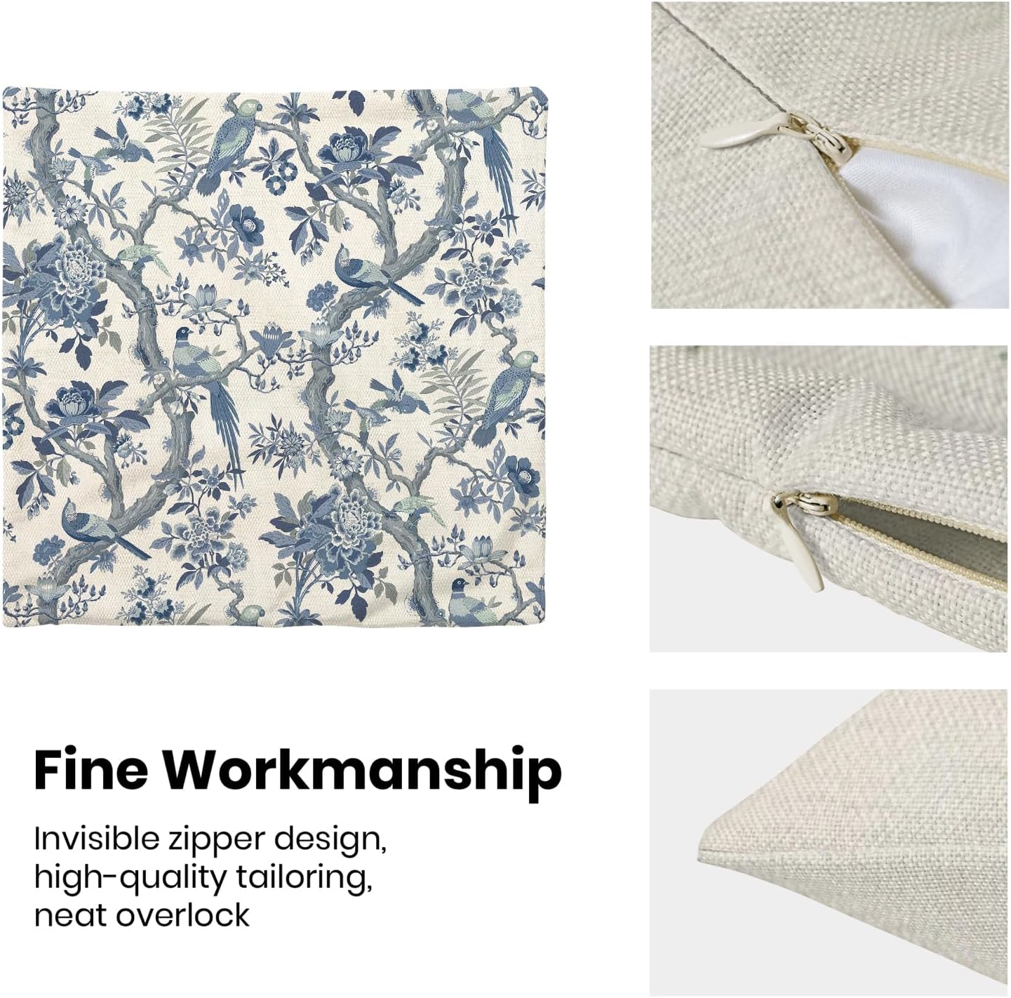 - 【Square Pillow Covers Size】 Chinoiserie flower birds pillow case set includes 2 pcs of farmhouse couch pillow covers (NO Pillow). Home decor farmhouse pillow covers measures 18x18 inch/ 45x45 cm. All the floral decor throw pillow covers have a hidden zipper. It is easy to insert or remove the pillow core to replace the spring pillowcase. Easy to clean and wash, sturdy and not easy to damage.