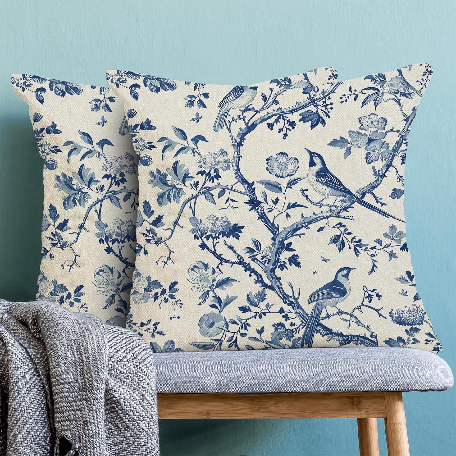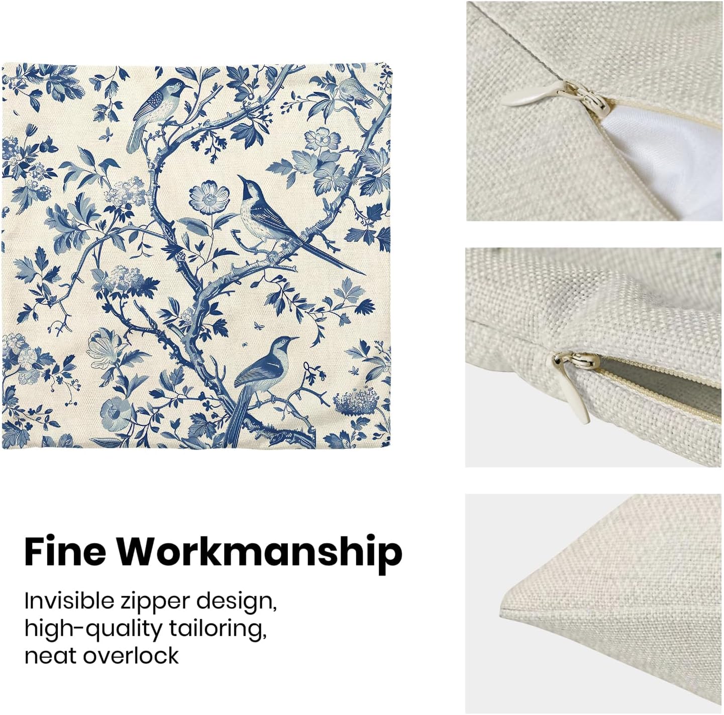 - 【Square Pillow Covers Size】 Chinoiserie flower birds pillow case set includes 2 pcs of farmhouse couch pillow covers (NO Pillow). Home decor farmhouse pillow covers measures 18x18 inch/ 45x45 cm. All the floral decor throw pillow covers have a hidden zipper. It is easy to insert or remove the pillow core to replace the spring pillowcase. Easy to clean and wash, sturdy and not easy to damage.