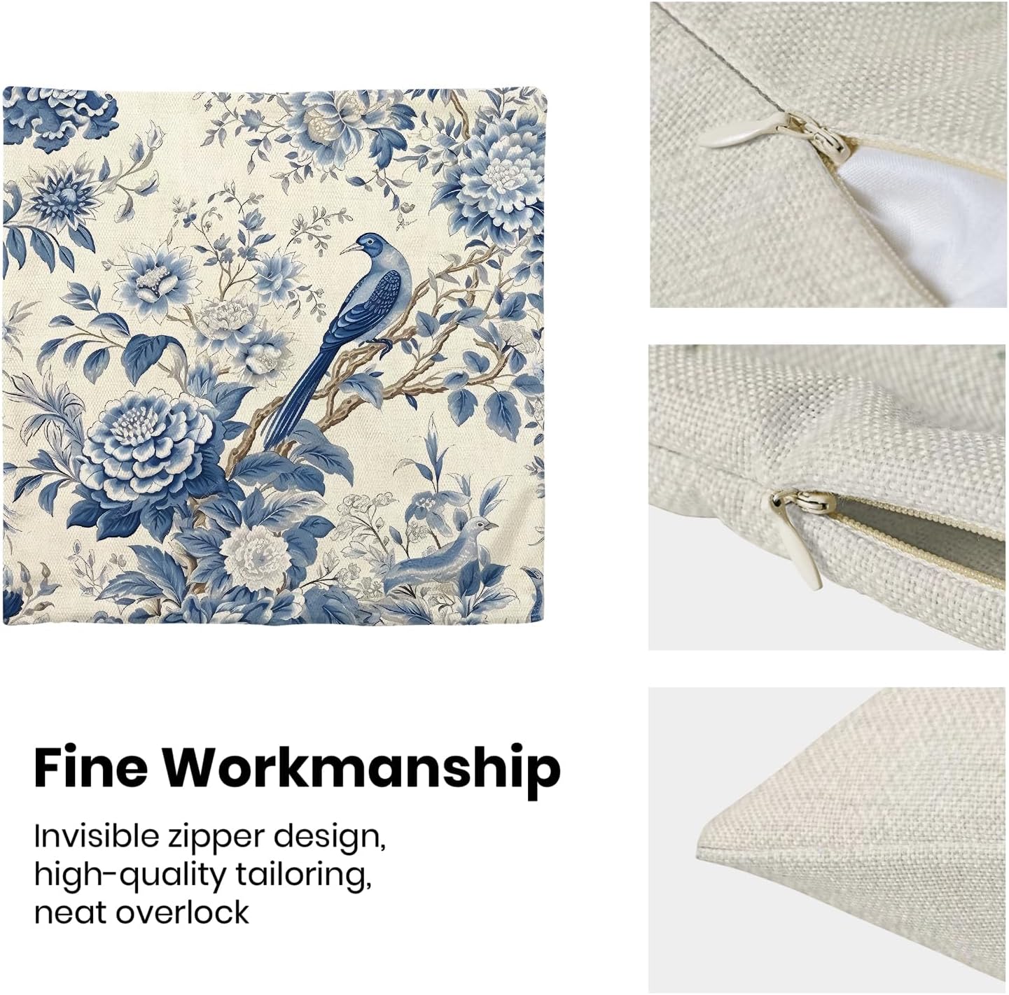- 【Square Pillow Covers Size】 Chinoiserie flower birds pillow case set includes 2 pcs of farmhouse couch pillow covers (NO Pillow). Home decor farmhouse pillow covers measures 18x18 inch/ 45x45 cm. All the floral decor throw pillow covers have a hidden zipper. It is easy to insert or remove the pillow core to replace the spring pillowcase. Easy to clean and wash, sturdy and not easy to damage.