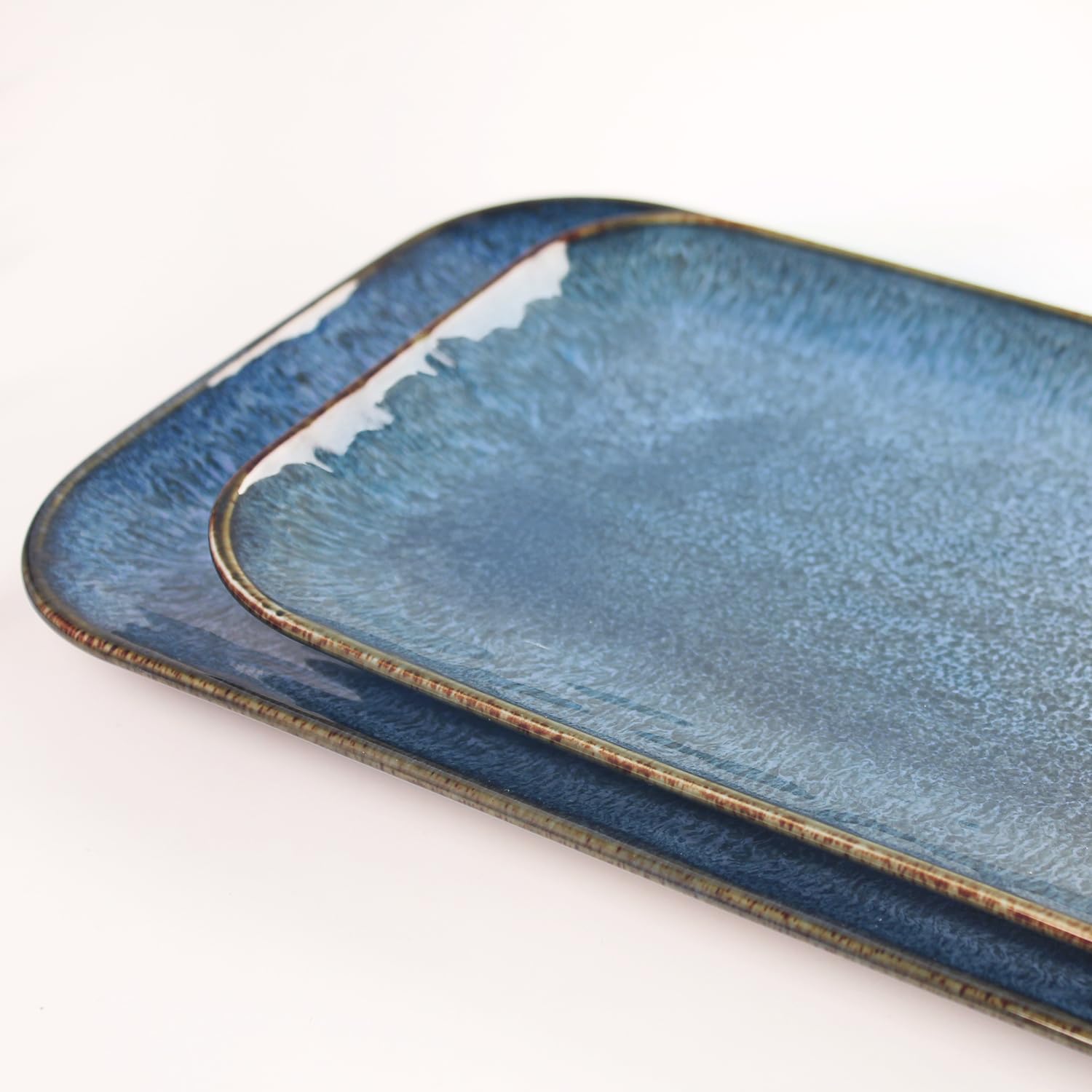 Porcelain Dinner Plates Blue 2 PCS, Serving platters for entertaining, for Fruit, cheese, snack, Bread, cupcake, Salad - Scratch Resistant durable, Microwave, Dishwasher Safe