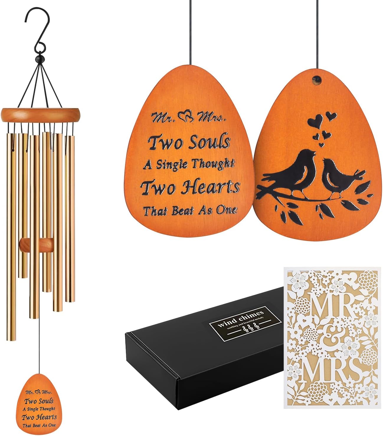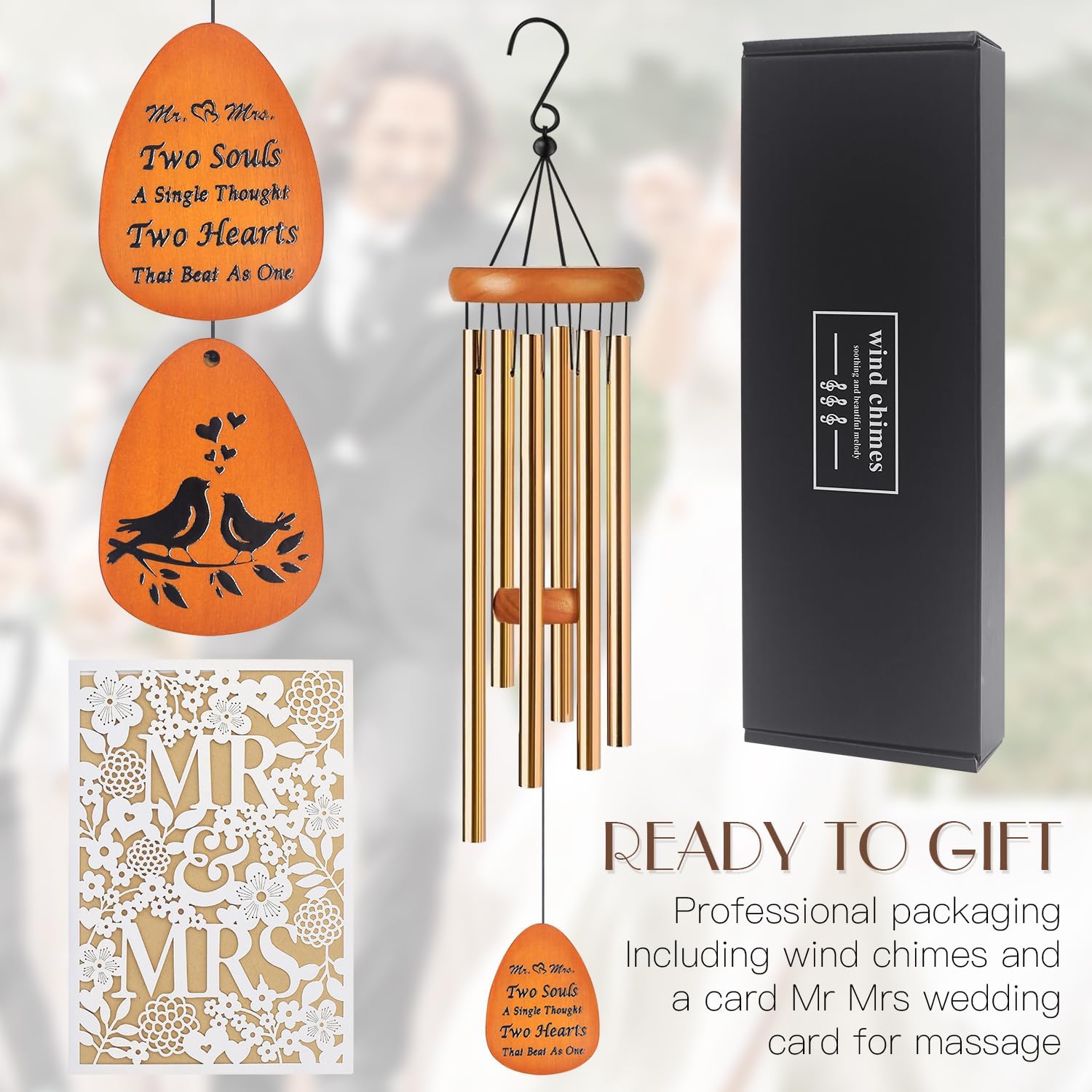 - Wedding Gifts for Couples Express your warmest and most sincere wishes to the newlyweds with our unique wedding wind chimes, wishing them a beautiful journey of marriage. The beautiful melody of the wind chimes will remind them of their love and commitment to each other, symbolizing the happiness and joy of their marriage, this wind chimes is an ideal gift for newlyweds, couples, brides, and grooms.
