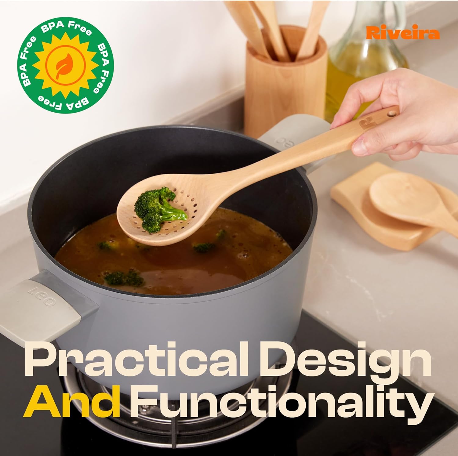 - Versatile and Eco-Friendly Maple Utensils – Our kitchen utensil and wood spoons are made from environmentally friendly maple, which is long-lasting and sustainable. The wood cooking utensils set is designed for all cooking styles, offering tools for stirring, serving, and flipping. These wooden utensils for cooking are perfect for non-stick cookware, providing a scratch-free experience. These wood cooking utensils make a great addition to your kitchen.