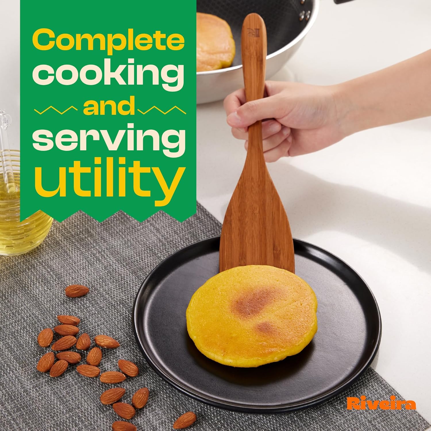 Riveira Brown Bamboo Wooden Spoons for Cooking Set of 6 – Natural Brown Bamboo Wooden Cooking Utensils, Wooden Spatula, Wooden Spoon - Premium Quality Wooden Utensil Set for Non-Toxic Cooking
