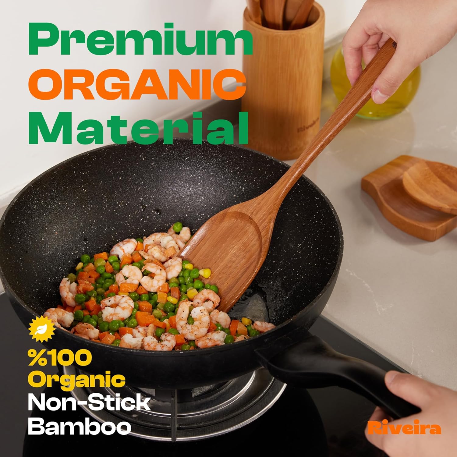 - Versatile and Eco-Friendly Brown Bamboo Utensils – Our kitchen utensil and wood spoons are made from environmentally friendly brown bamboo, which is long-lasting and sustainable. The wood cooking utensils set is designed for all cooking styles, offering tools for stirring, serving, and flipping. These wooden utensils for cooking are perfect for non-stick cookware, providing a scratch-free experience. These wood cooking utensils make a great addition to your kitchen.