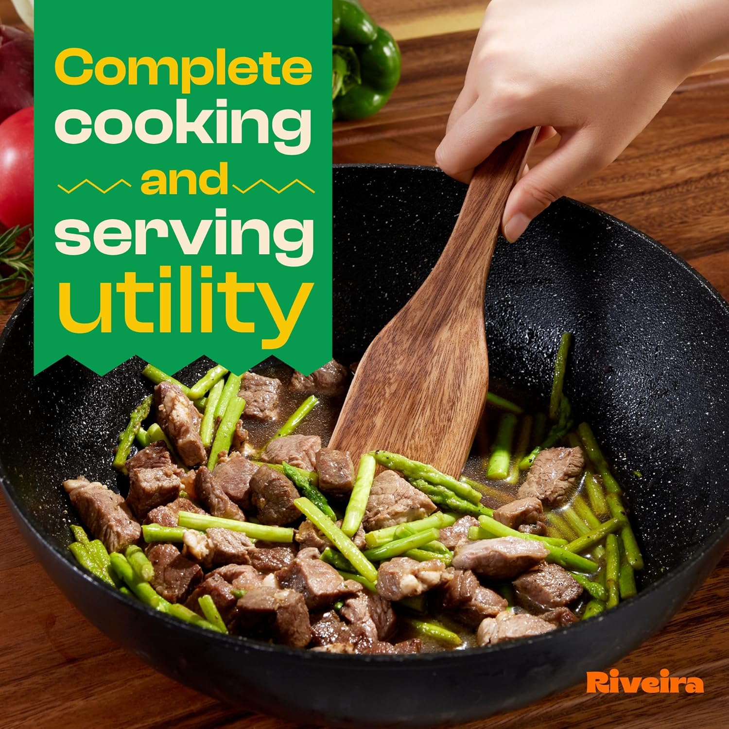 Riveira Walnut Wooden Spoons for Cooking Set of 6 – Natural Walnut Wooden Cooking Utensils, Spatula, Spoon - Premium Quality Utensil Set for Non-Toxic Cooking