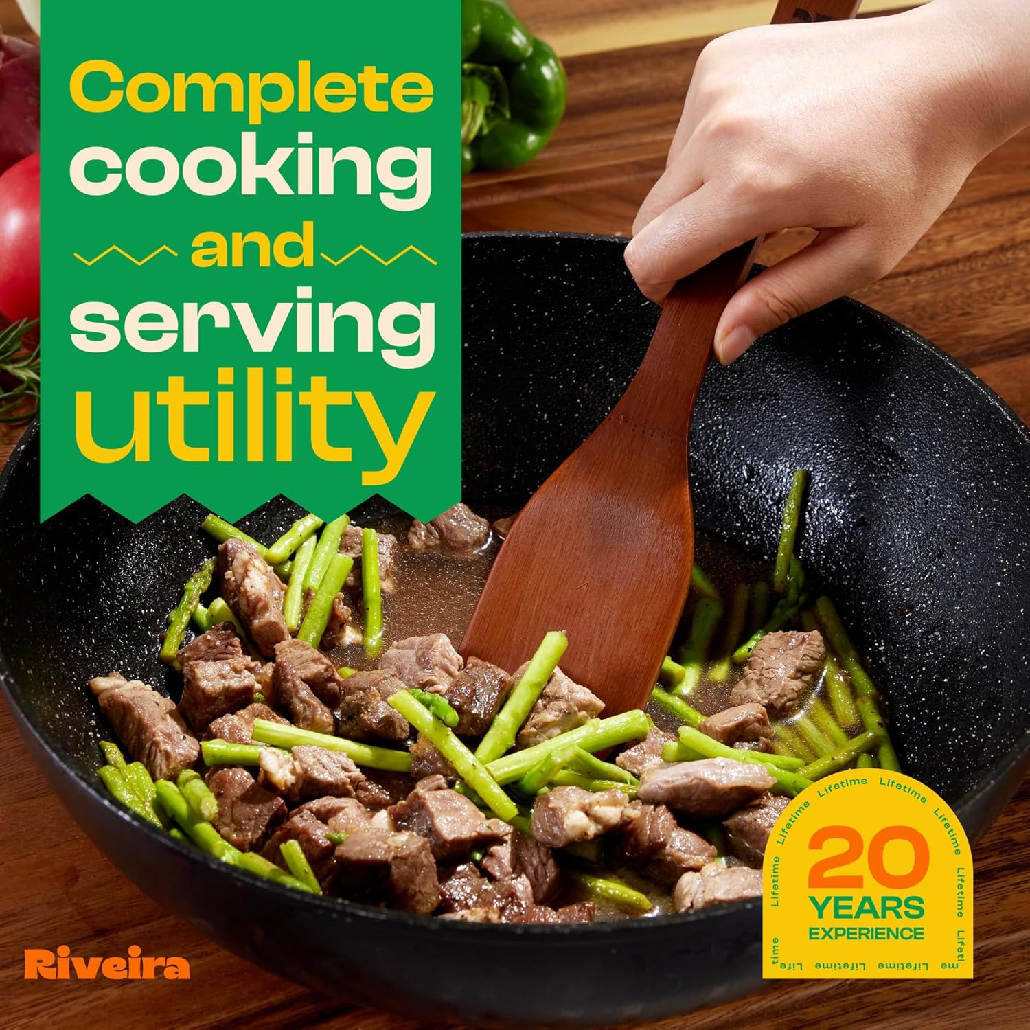 - Durable and Safe for All Cookware – Our premium brown bamboo wood utensils are made to last. These wooden kitchen utensils are heat-resistant and designed to withstand daily use. They are also non toxic kitchen utensils, ensuring safe cooking. The wood spatula for cooking is perfect for handling delicate foods, and the wooden spatula set provides a variety of options for different types of dishes. With this set, you get both durability and a natural, safe cooking experience.