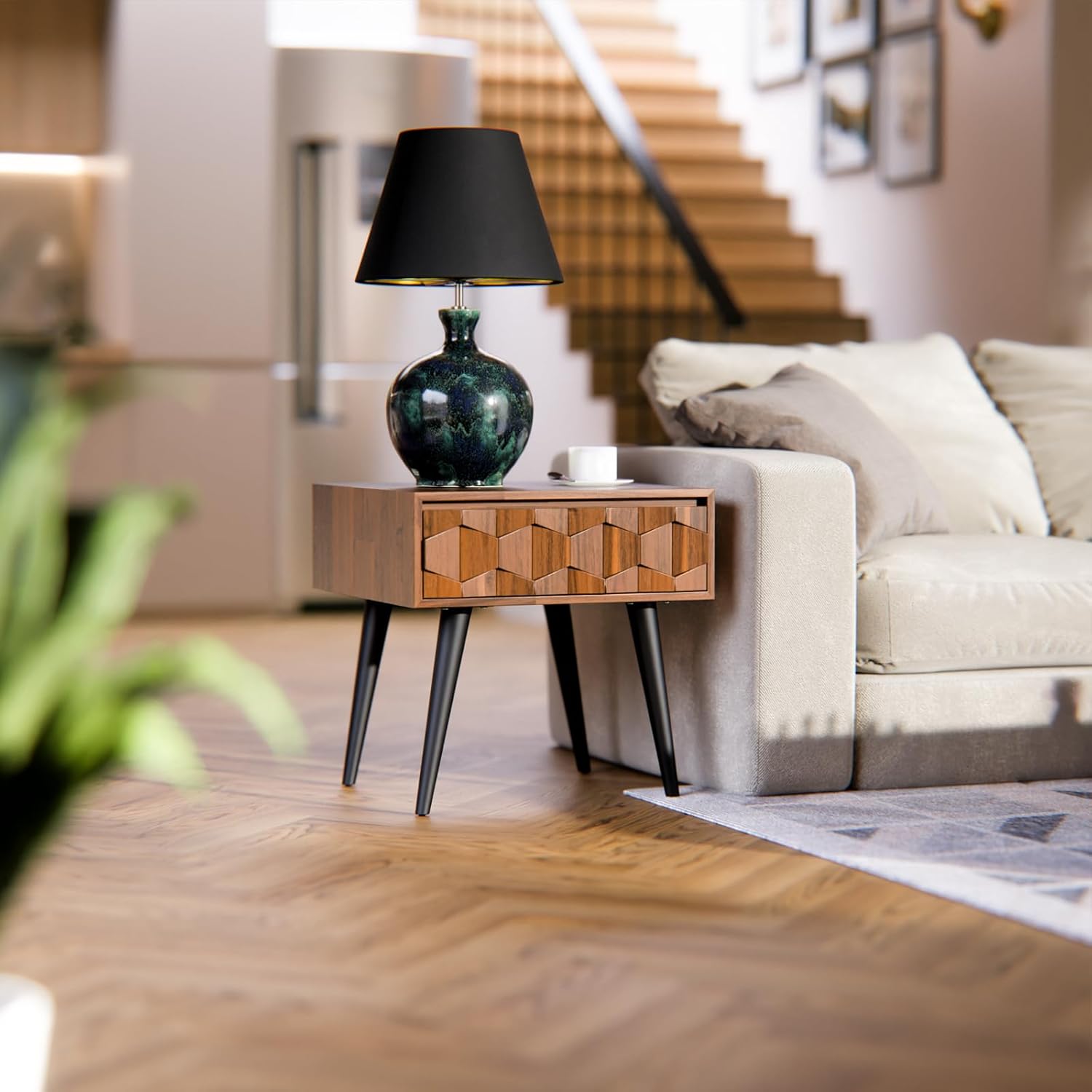 - QUALITY NIGHTSTAND: Expertly made from acacia solid wood with a durable finish, our mid century modern nightstand ensures long lasting quality; This accent nightstand has a sturdy structure with metal legs for longevity and stability