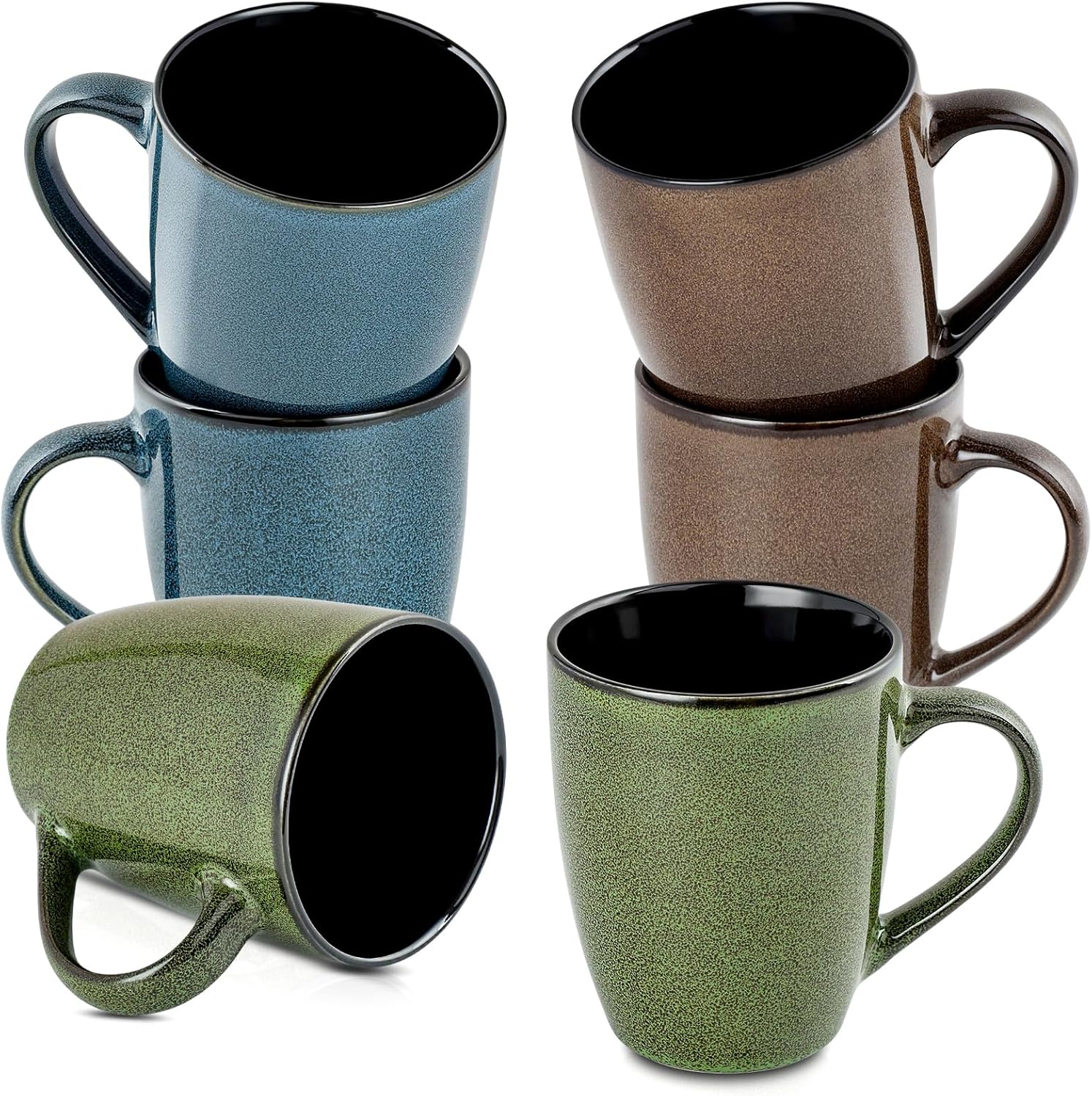 Ceramic Coffee Mugs 12oz, Set of 6 - Large With Handle for Men, Women, Dad, Mom - Modern Cups for Tea, Latte, Cappuccino, Cocoa (6 Pack)