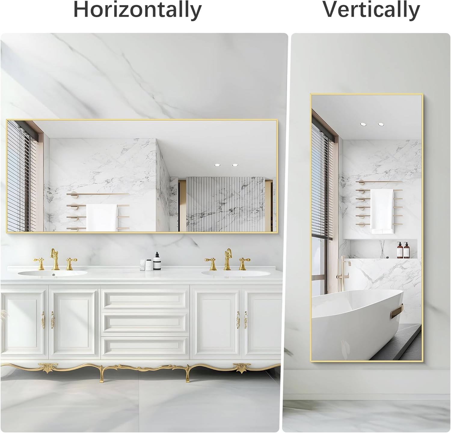 36x72inch Bathroom Mirror, Gold Rectangle Mirror with Thin Metal Frame, Large Rectangular Wall Mirrors for Bathroom, Living Roomm, Hair Salon, Big Farmehouse Mirror Hang Horizontal/Vertical
