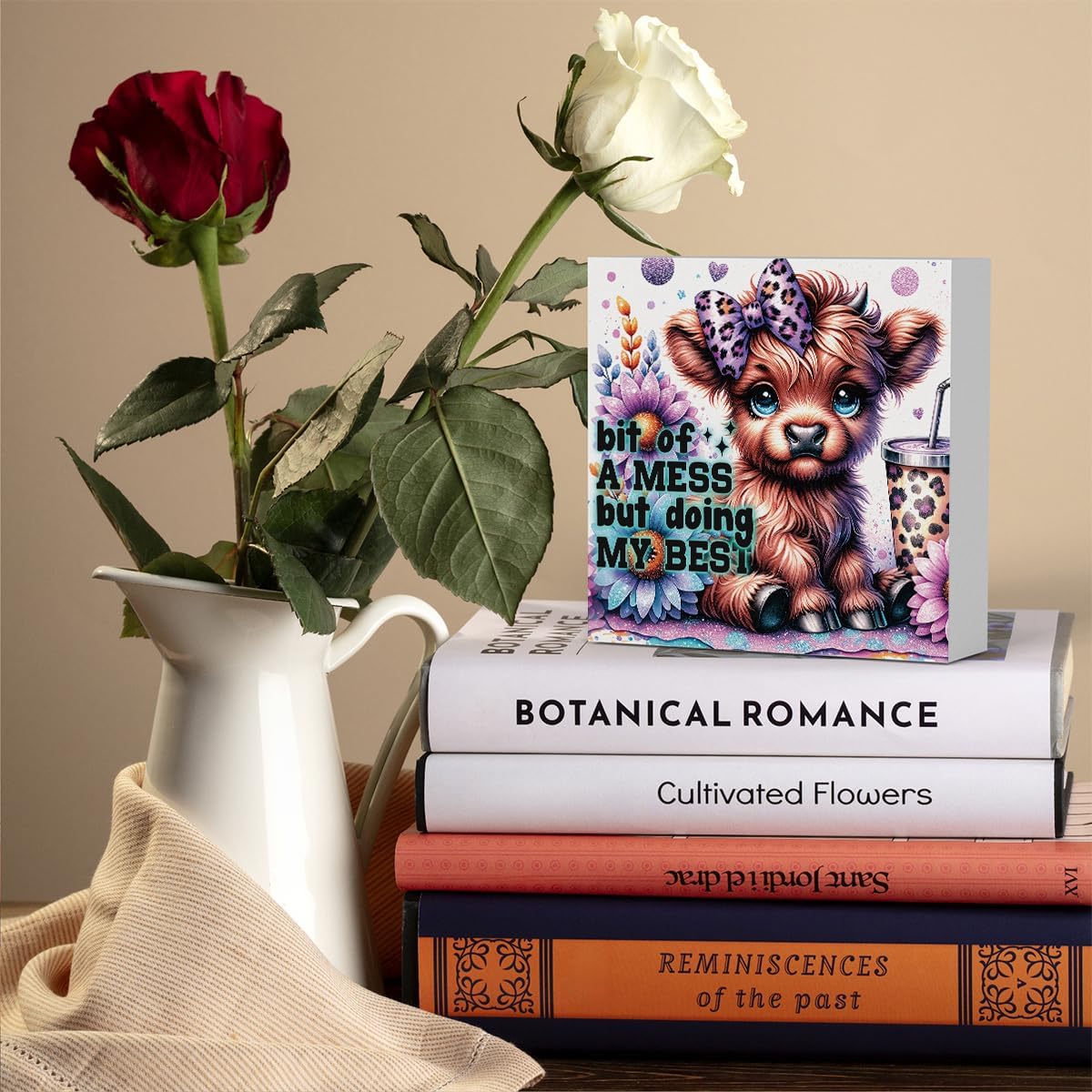 Highland Cow Baby Decor, Highland Cow Sunflower Decor, Highland Cow Gifts for women, Highland Cow Nursery Decor, Wooden Box Decor Sign for Home Farmhouse Office Living Room Table Shelf Tiered