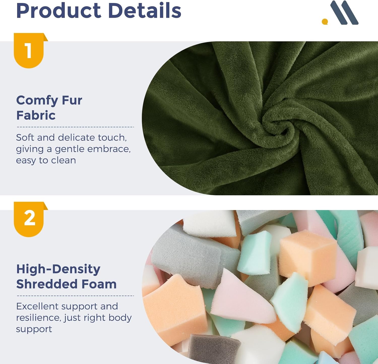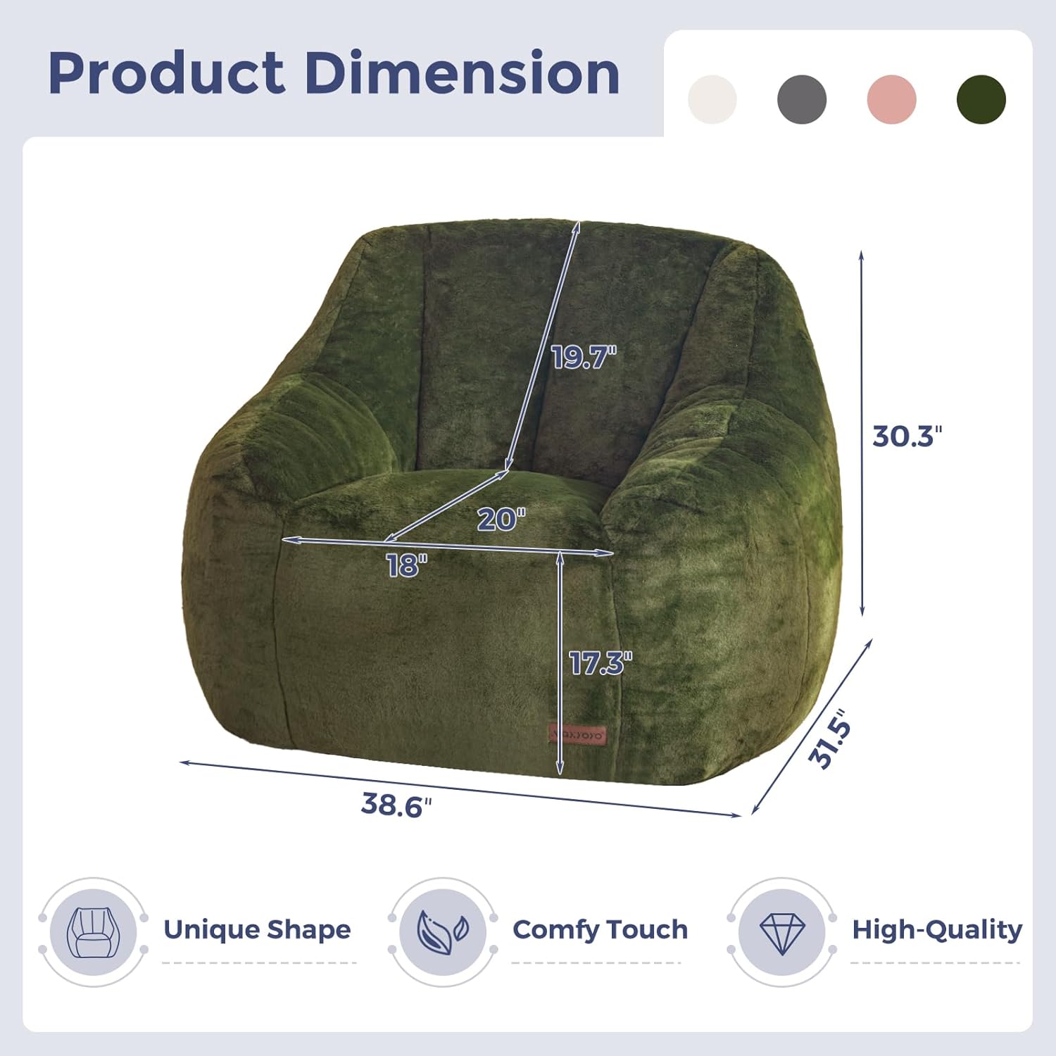 MAXYOYO Bean Bag Chair, Comfy Bean Bag Sofa with Back Support, Faux Fur Bean Bag Chair for Adults and Kids, Stuffed Floor Sofa for Living Room, Bedroom, Apartment, Green