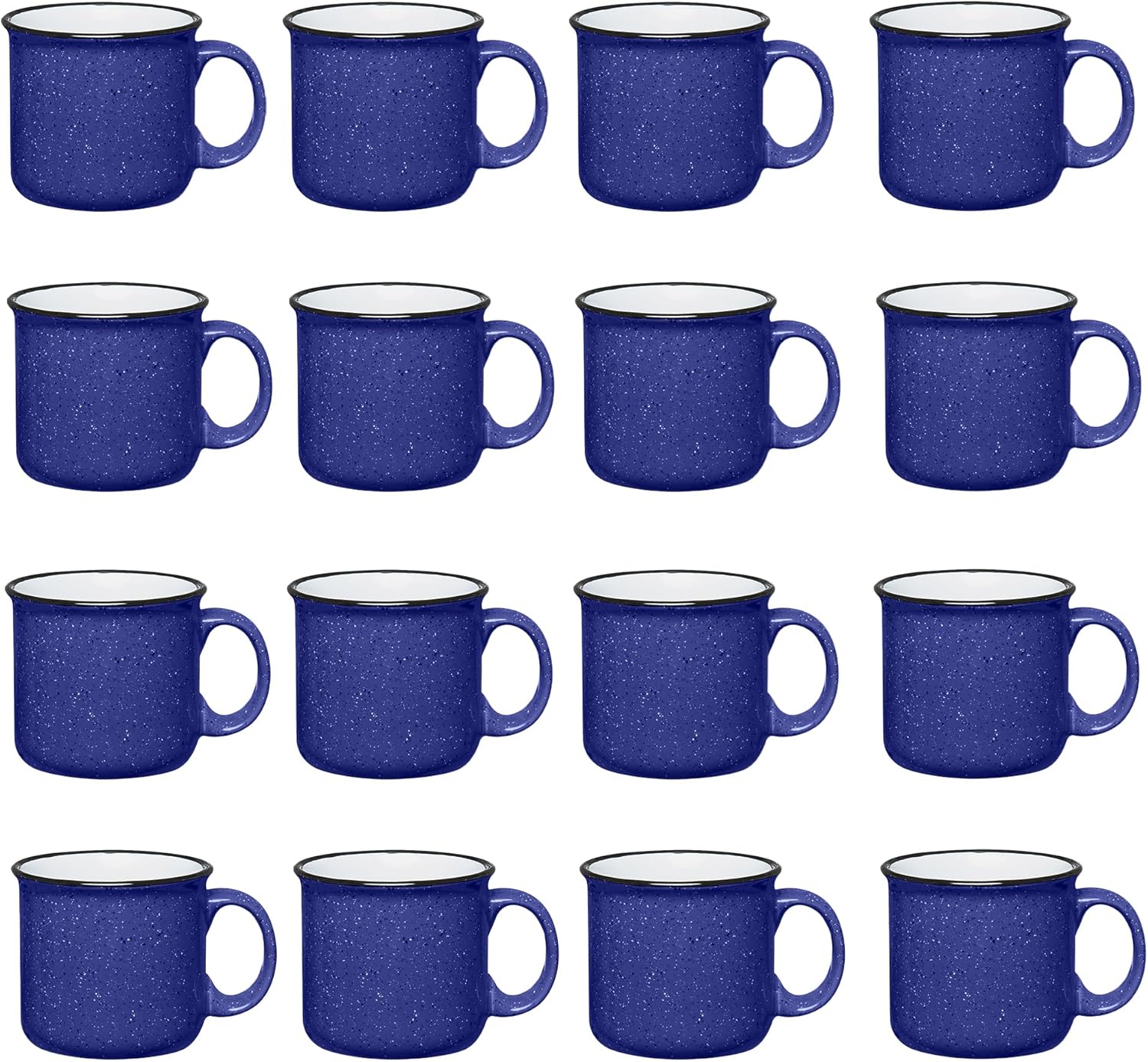 Set of 16 Ceramic Campfire Mugs – 15 Oz, Cobalt Blue – Coffee & Tea Cups for Home, Work, Travel, Camping – Customizable, Great for DIY, Events, Companies