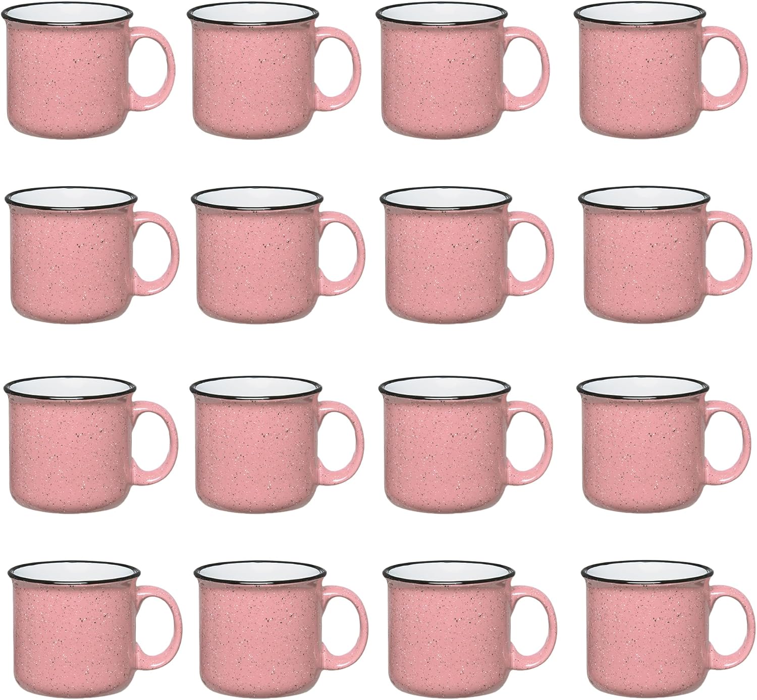 Set of 16 Ceramic Campfire Mugs – 15 Oz, Pink – Coffee & Tea Cups for Home, Work, Travel, Camping – Customizable, Great for DIY, Events, Companies