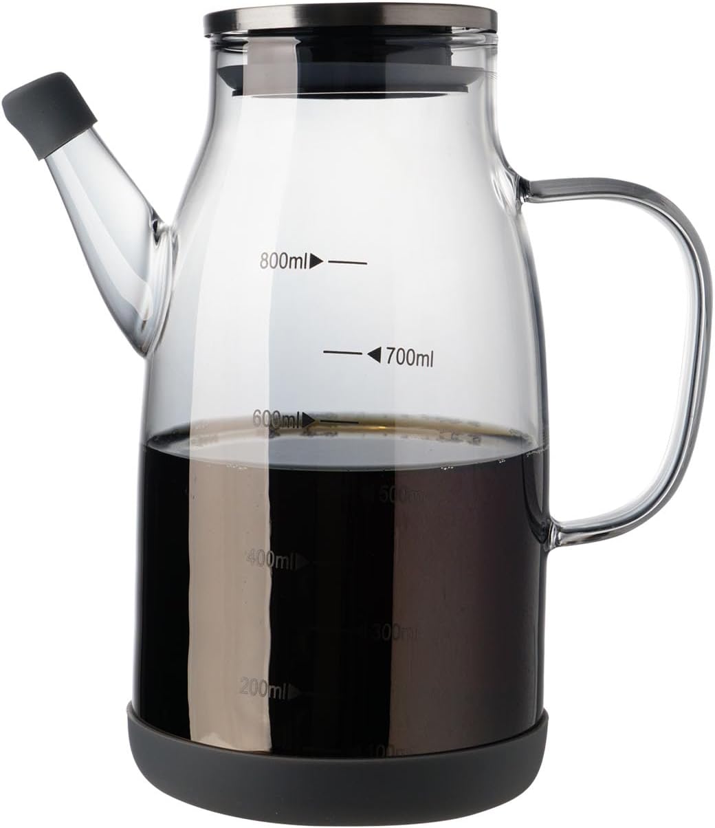 Large Glass Oil Dispenser Bottle for Kitchen Cooking Recipiente Para Aceite De Cocina Olive Oil Vinegar Dispenser Cruet Stainless Steel Lid No Drip Liquid Container (Grey, 27oz / 800ml)