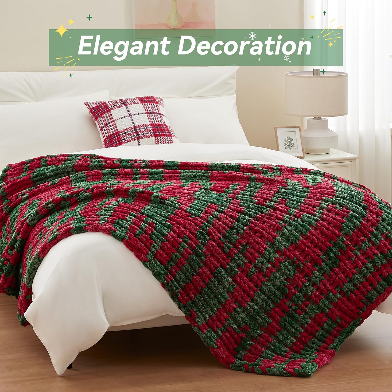 Chunky Knit Throw Blanket, 50''*60'' Knitted Throw Chenille Yarn for Bed Couch, Handmade Stripe Crochet Big Thick Blanket, Machine Washable Cute Comfy Blanket for Home Decor