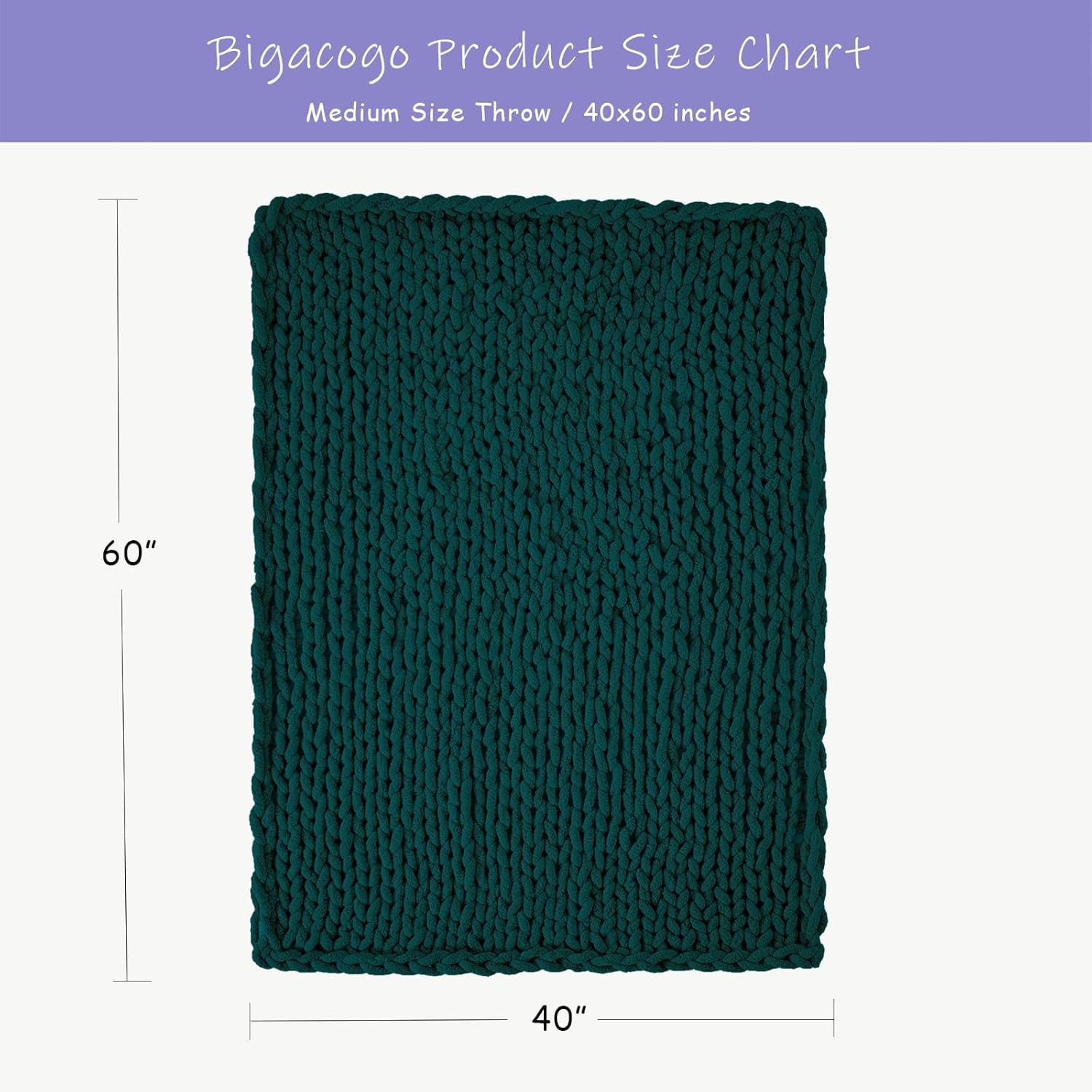 Bigacogo Chunky Knit Throw Blanket for Couch, 40x60 inches, 100% Hand Knitted with Thick Jumbo Chenille Yarn, Cozy Soft Large Rope Knot Cable Crochet Blankets for Sofa Bed Living Room, Dark Green