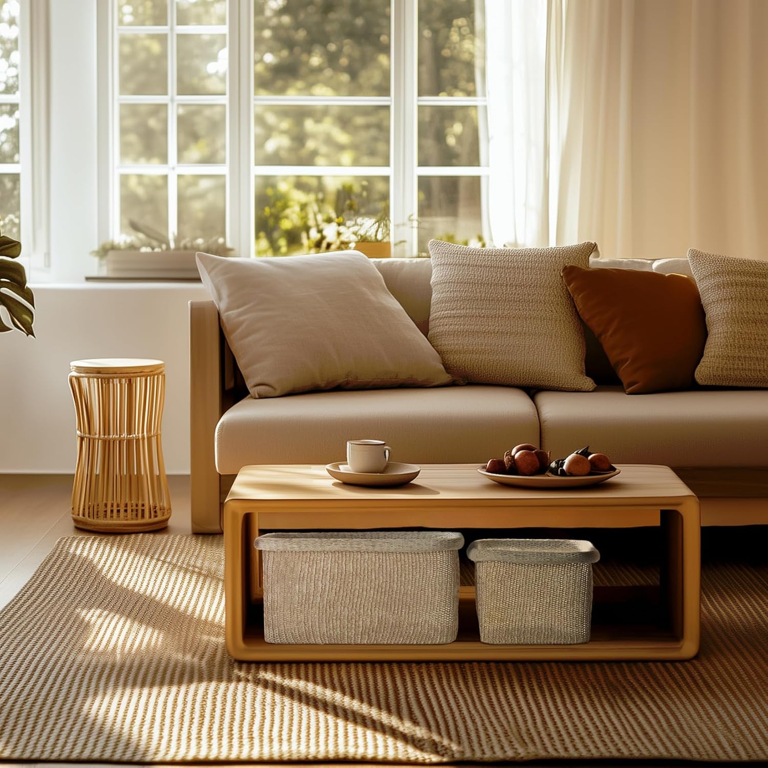 La Jolie Maison Blended Fabric Storage Baskets Set of 2, Rectangle Knitted Baskets for Organizing, Boho Decorative Baskets, Durable Finish, Oatmeal