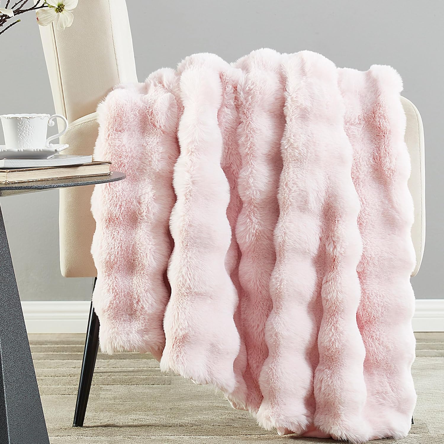 DREAMNINE Large Soft Thick Fuzzy Bubble Faux Rabbit Fur Bed Blanket Full Size 70" x 80",Lovely Big Warm Shaggy Fluffy Blankets for Winter,Solid Luxury Cozy Cute Bumpy Furry Blanket for Women Girl,Pink