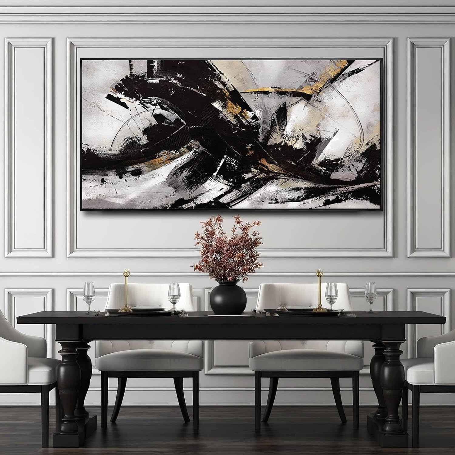 - Wall Decoration Size: 24"x 48", black and gold painting suitable size makes it a great decor addition to your living room,dinning room home and office.
