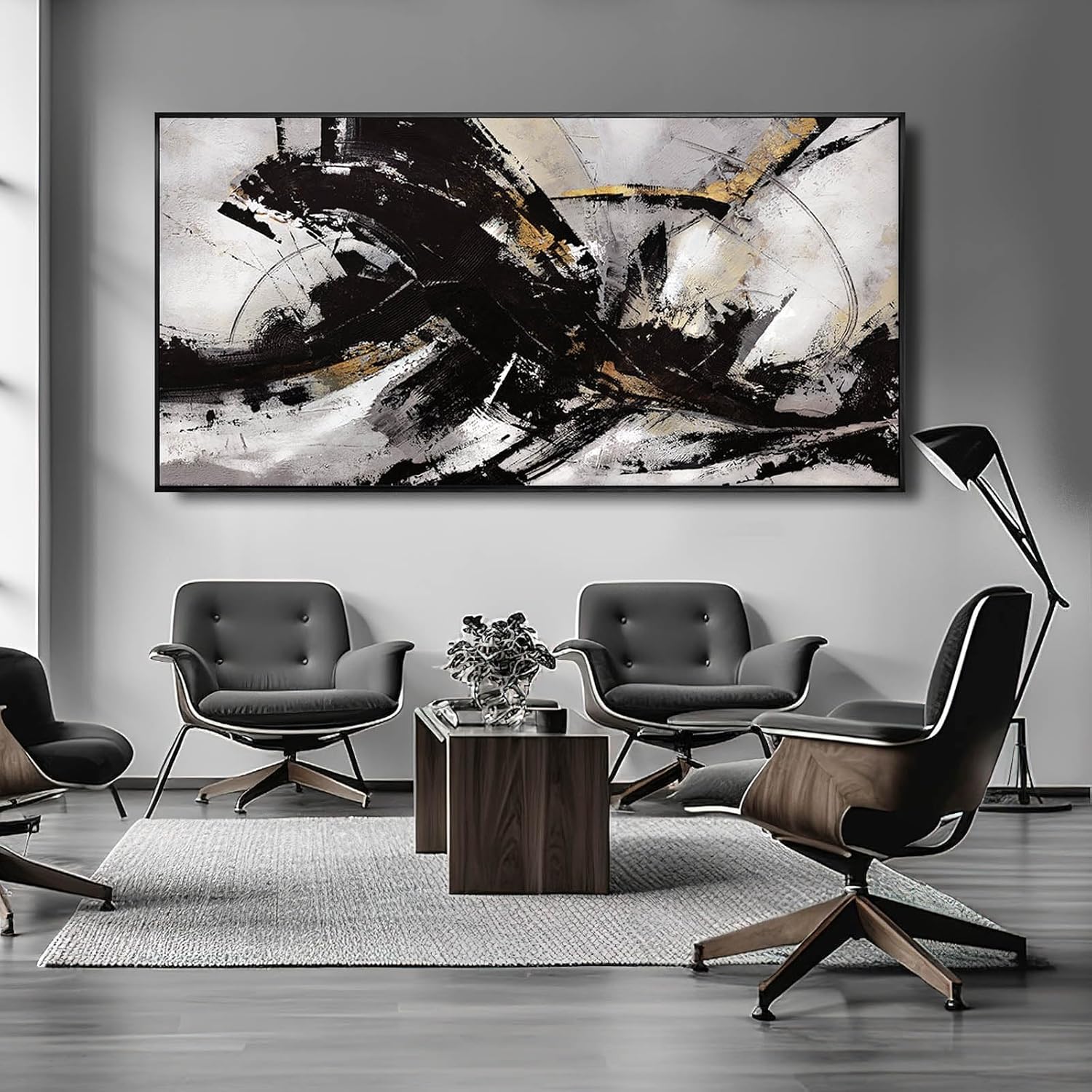Black Wall Art Abstract Wall Decor for Living Room Framed Wall Art Canvas Art Grunge Artwork Large Office Pictures for Men 24”x48”