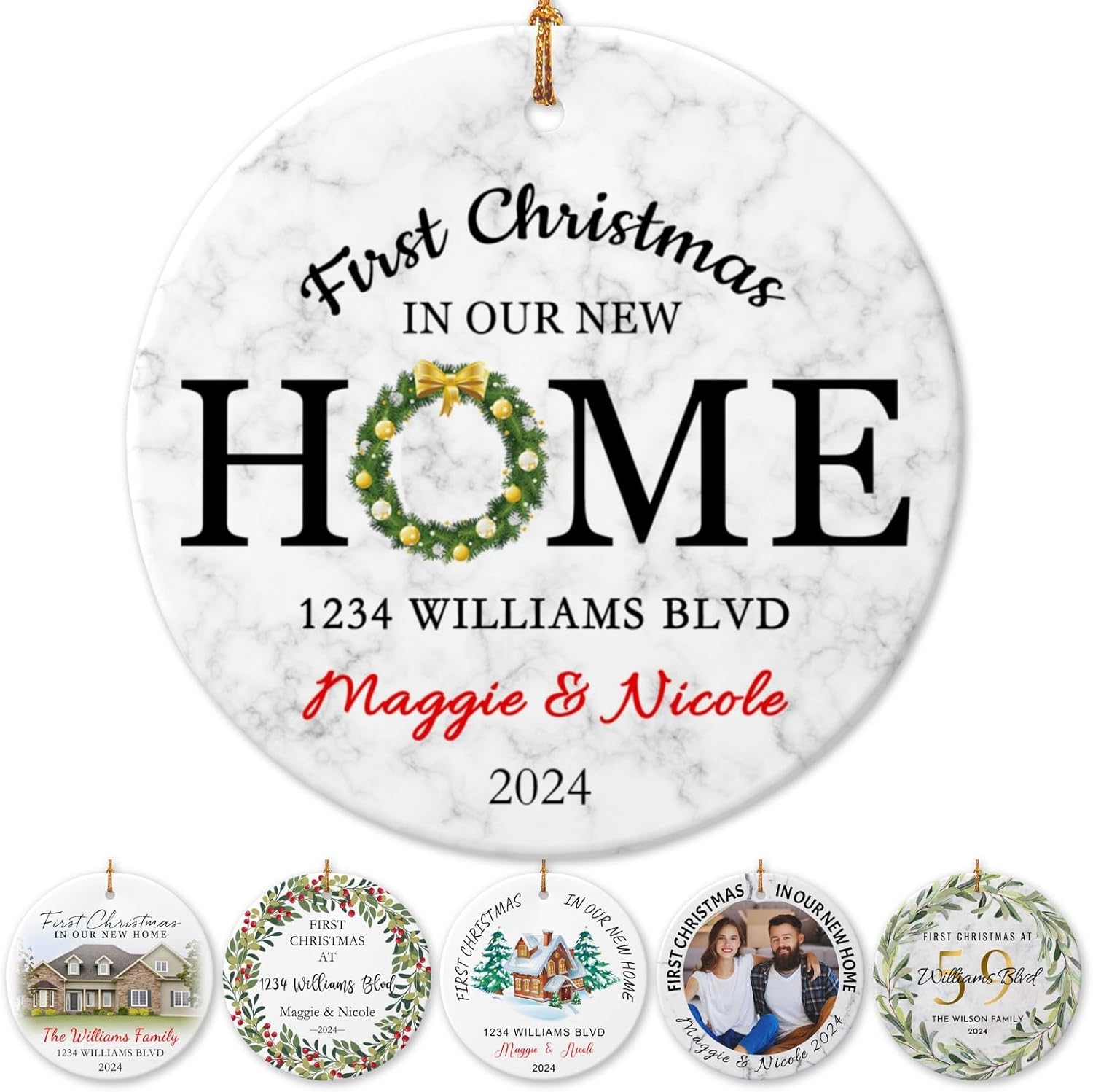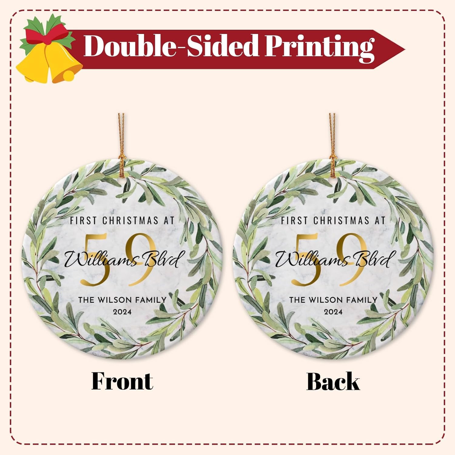 Personalized New Home Ornament 2025 w/Name & Address, Custom First Christmas in Our New Home Ornaments,Double-Sided Ceramic Customized New House Xmas Ornaments