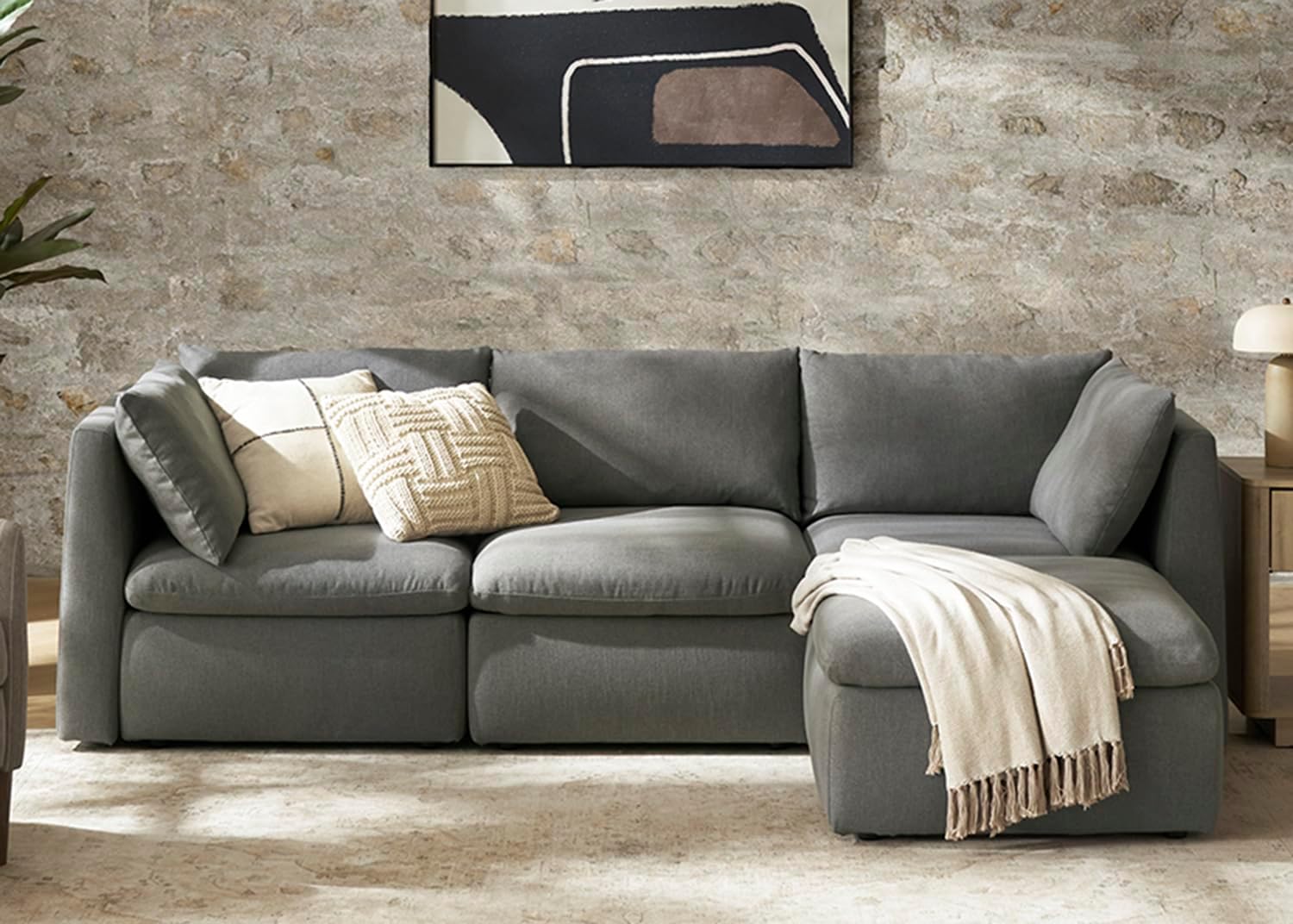 mopio Oversized Modular Sectional Sofa with Fully Removable Covers and Storage, Convertible U, L-Shaped and Sleeper Sectional, Modern Couches with Ottoman Chaise (Stone Gray Fabric, 4 Seats, L)