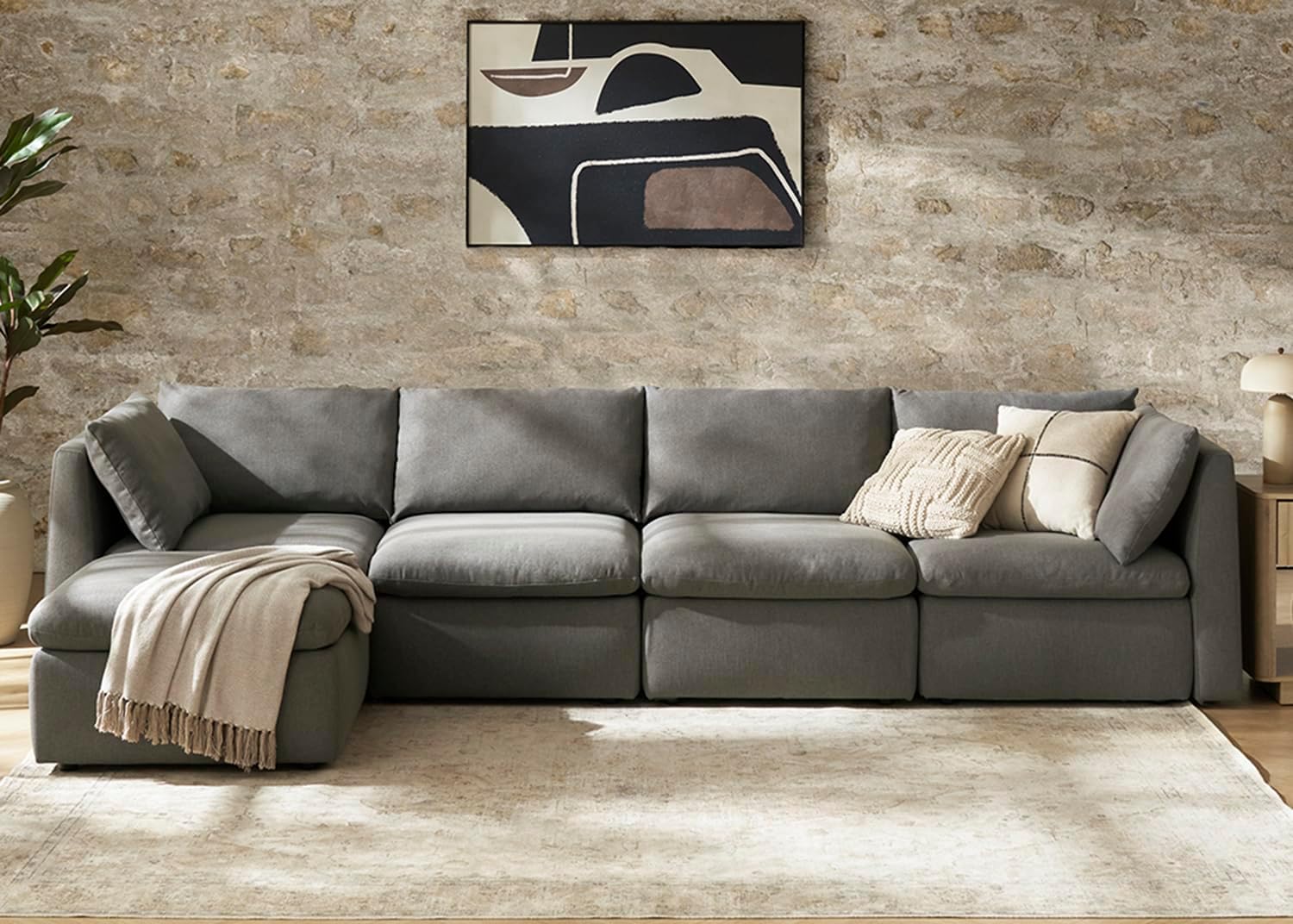 mopio Oversized Modular Sectional Sofa with Fully Removable Covers and Storage, Convertible U, L-Shaped and Sleeper Sectional, Modern Couches with Ottoman Chaise (Stone Gray Fabric, 5 Seats, L)