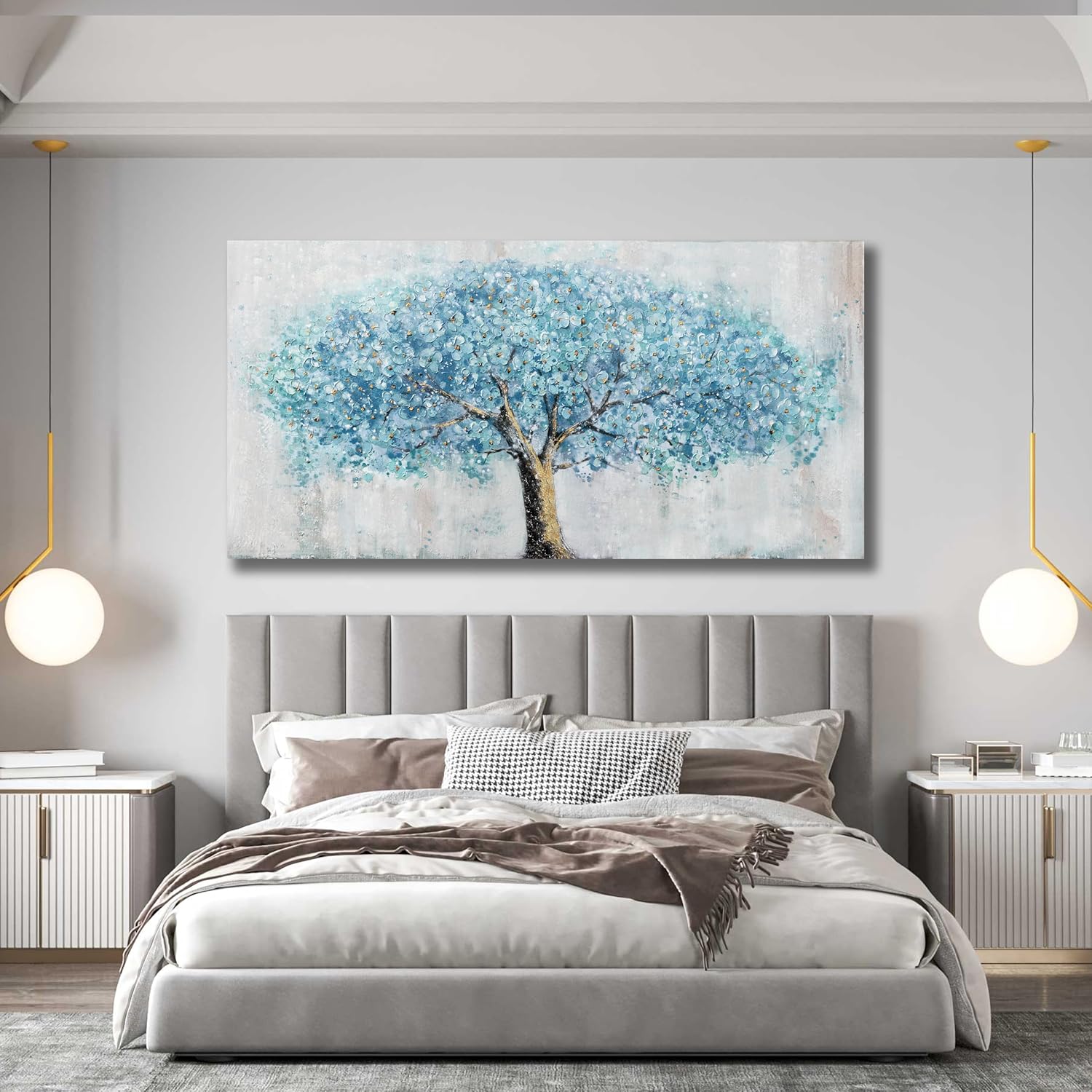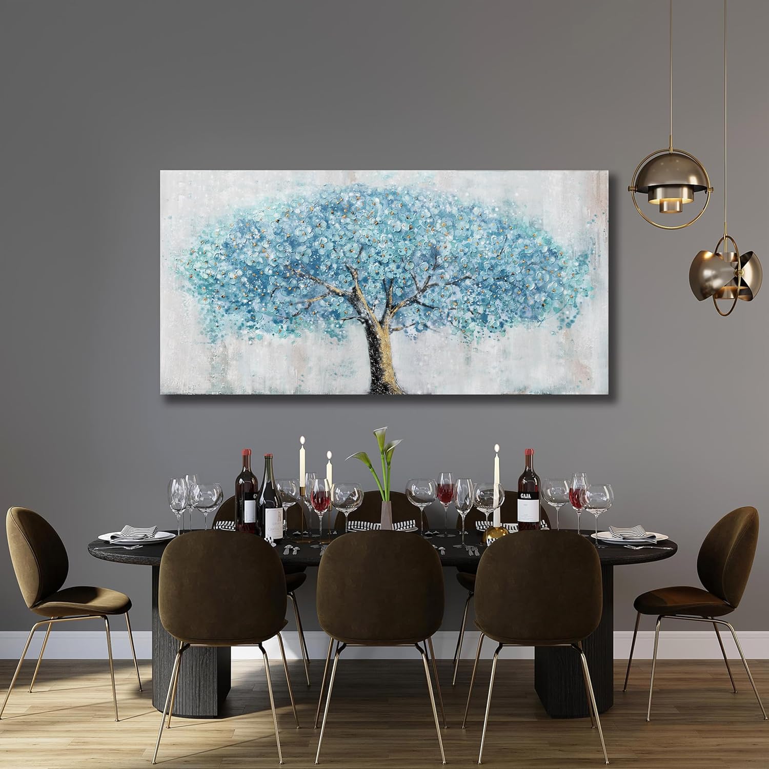 Yuaxker Tree Wall Art Blue and Gold Canvas Painting Modern Aesthetic Wall Decor Spiritual Artwork for Living Room Bedroom Dining Room Office Home Decor 20x40inch